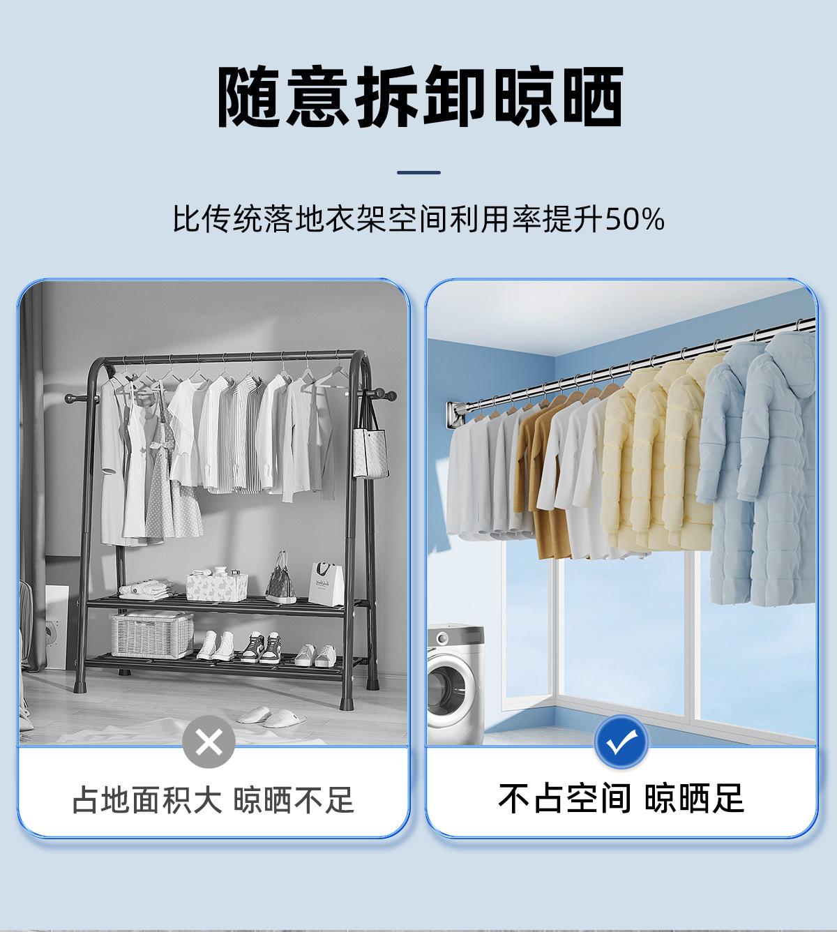 Barra Telescópica para Secar Ropa, Tendedero Fijo para Balcón sin Perforaciones, Tendedero de Acero Inoxidable para Colgar y Secar Ropa, Barra para Secar Ropa sin Perforaciones