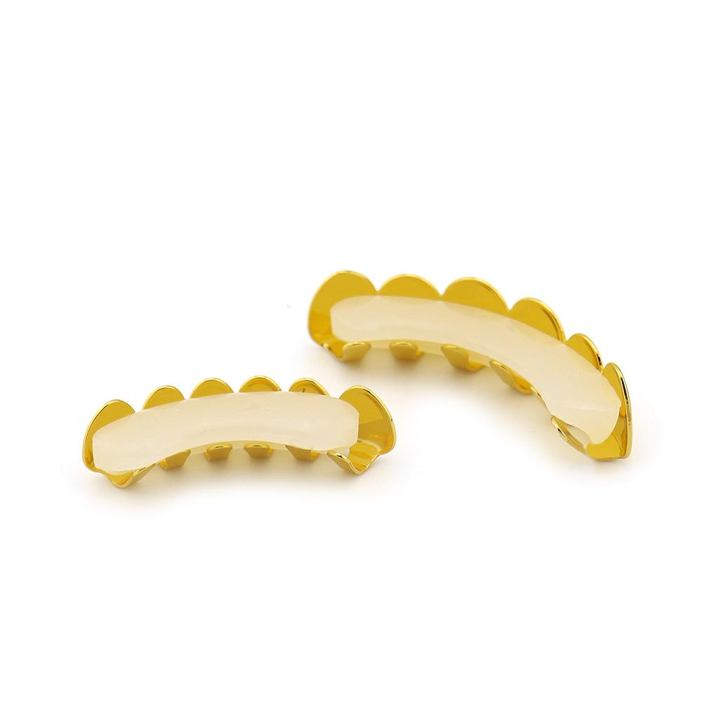 Brackets dorados de hip hop estilo hip hop europeos y americanos, parrillas para dientes, chapado en oro real, accesorios decorativos, accesorios para dientes lisos