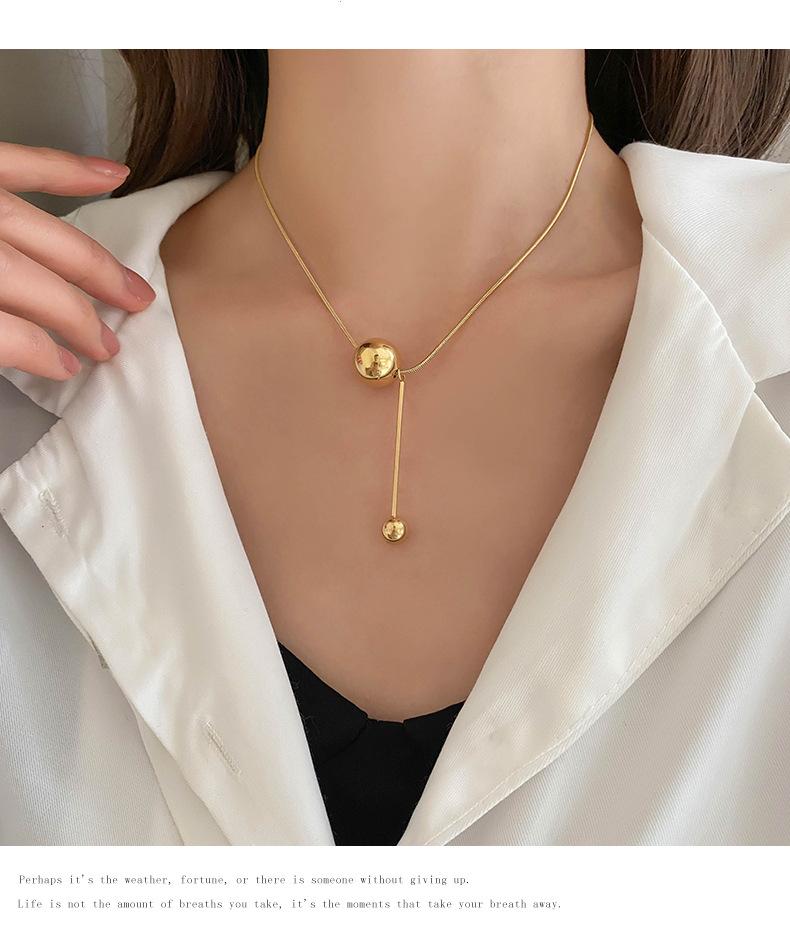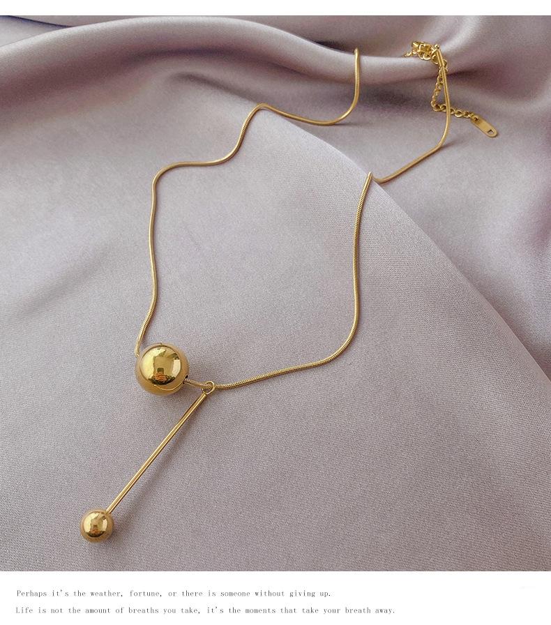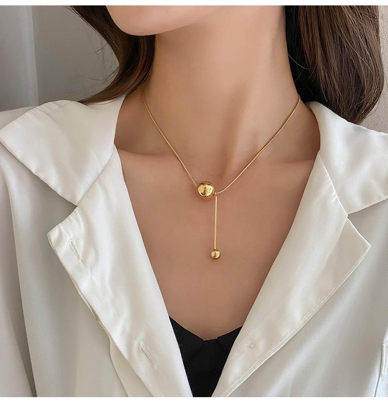 04-D17 titanium steel transfer bead necklace gold, 04-D18 titanium steel transfer beads necklace Silver