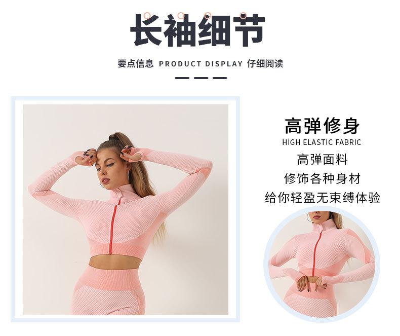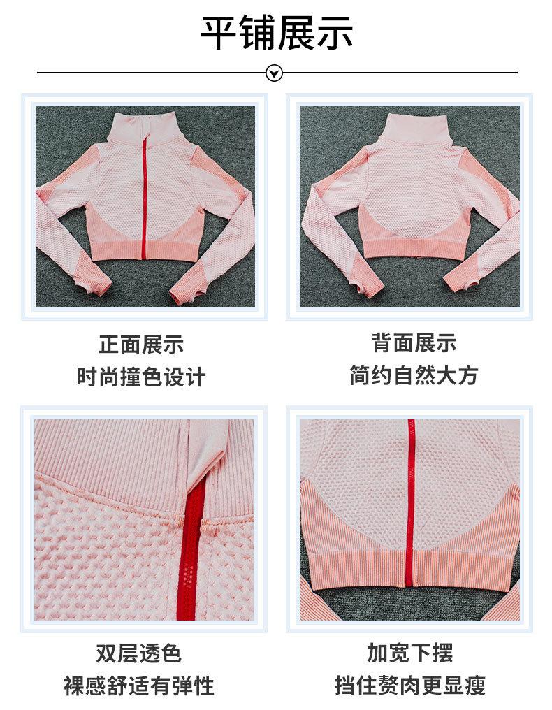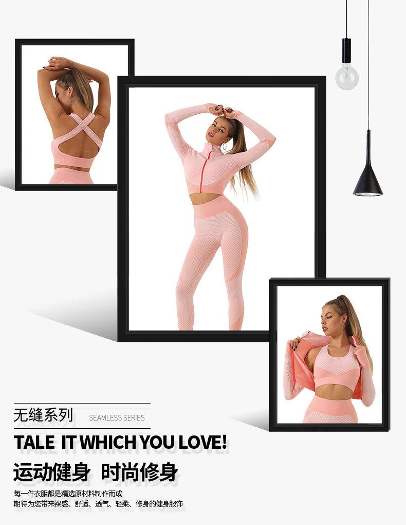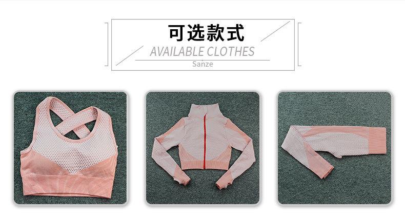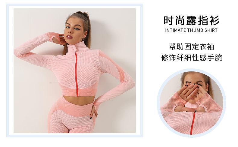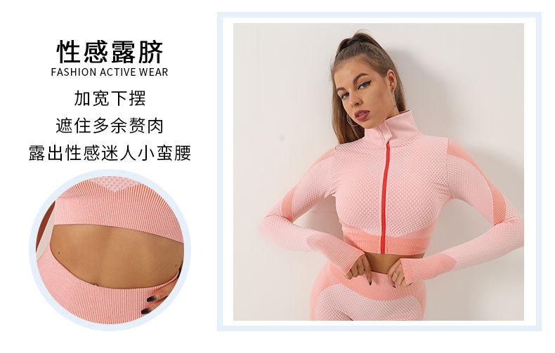 Traje de fitness a rayas con cremallera sin costuras para mujer, pantalones deportivos de otoño e invierno, sujetador de manga larga, traje de yoga de tres piezas