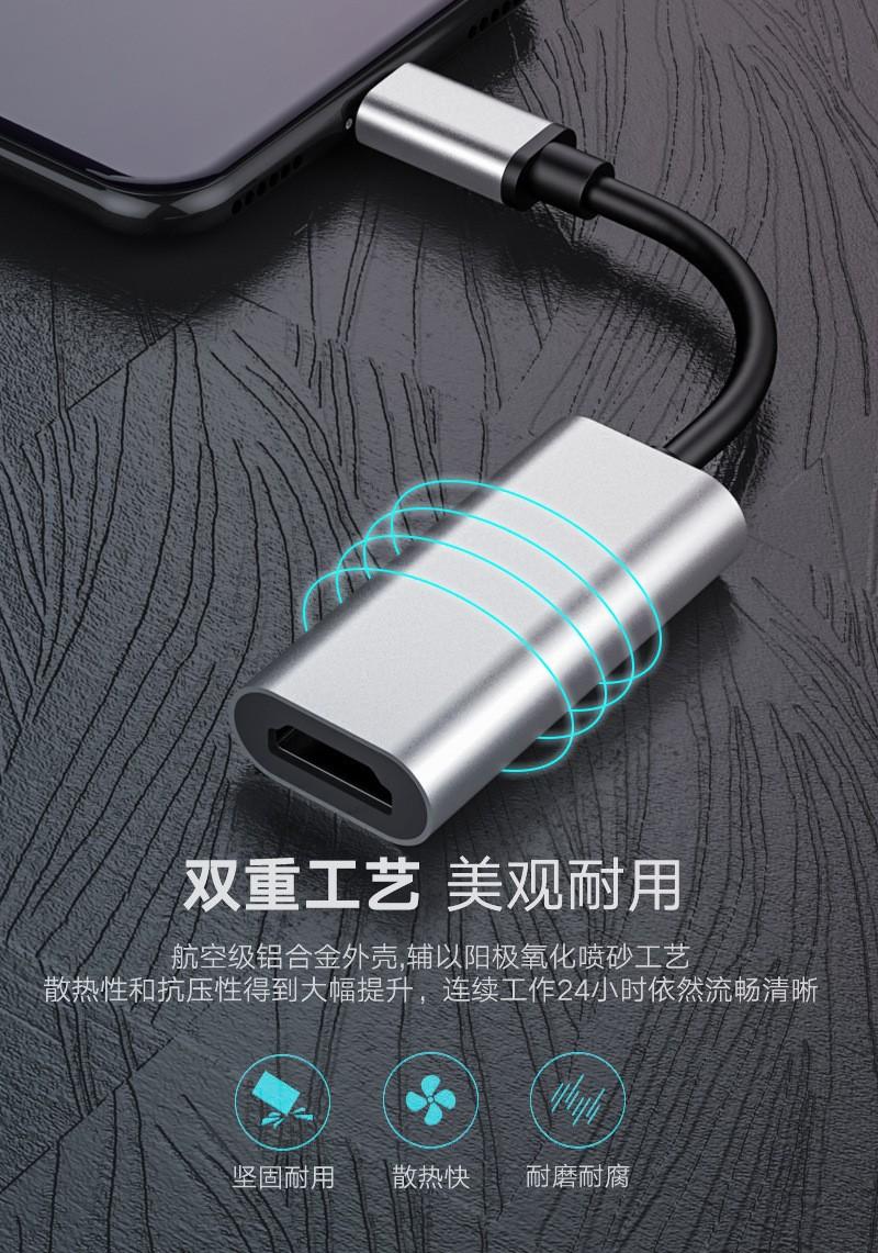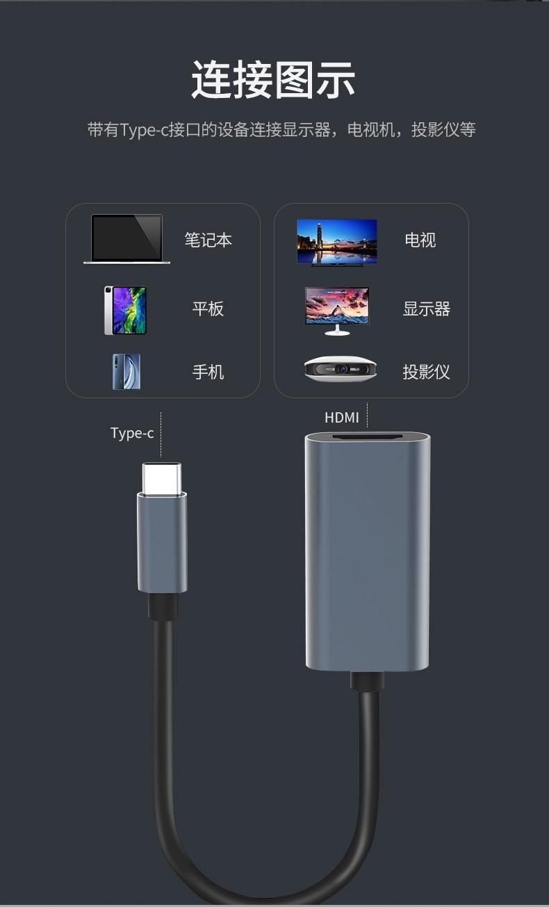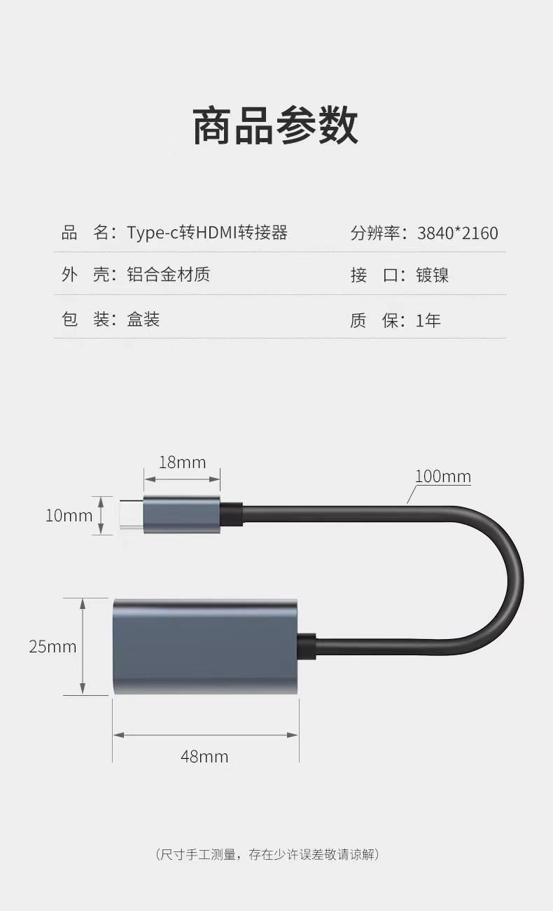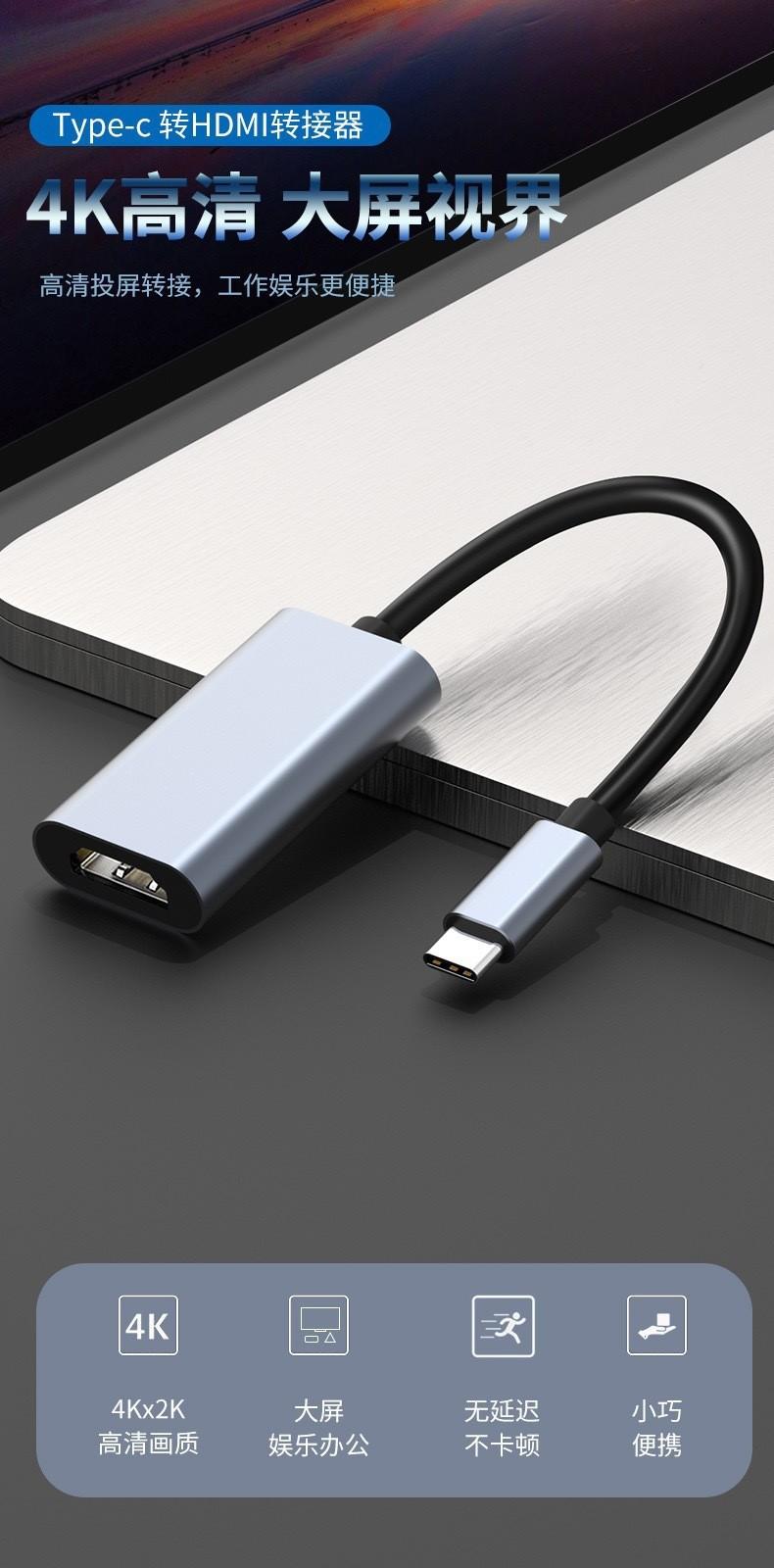 Adaptador transfronterizo de tipo C a HDMI, convertidor de tipo C a HDMI de aleación de aluminio 4K30Hz/60Hz