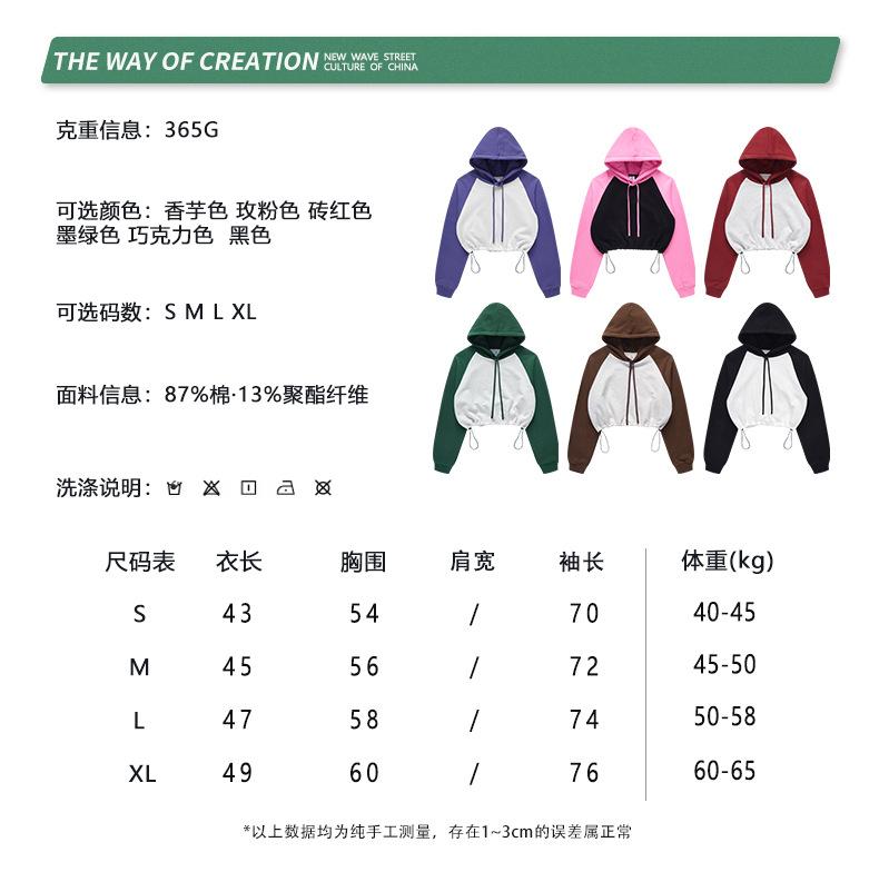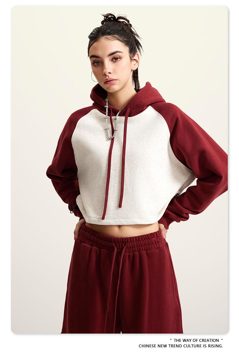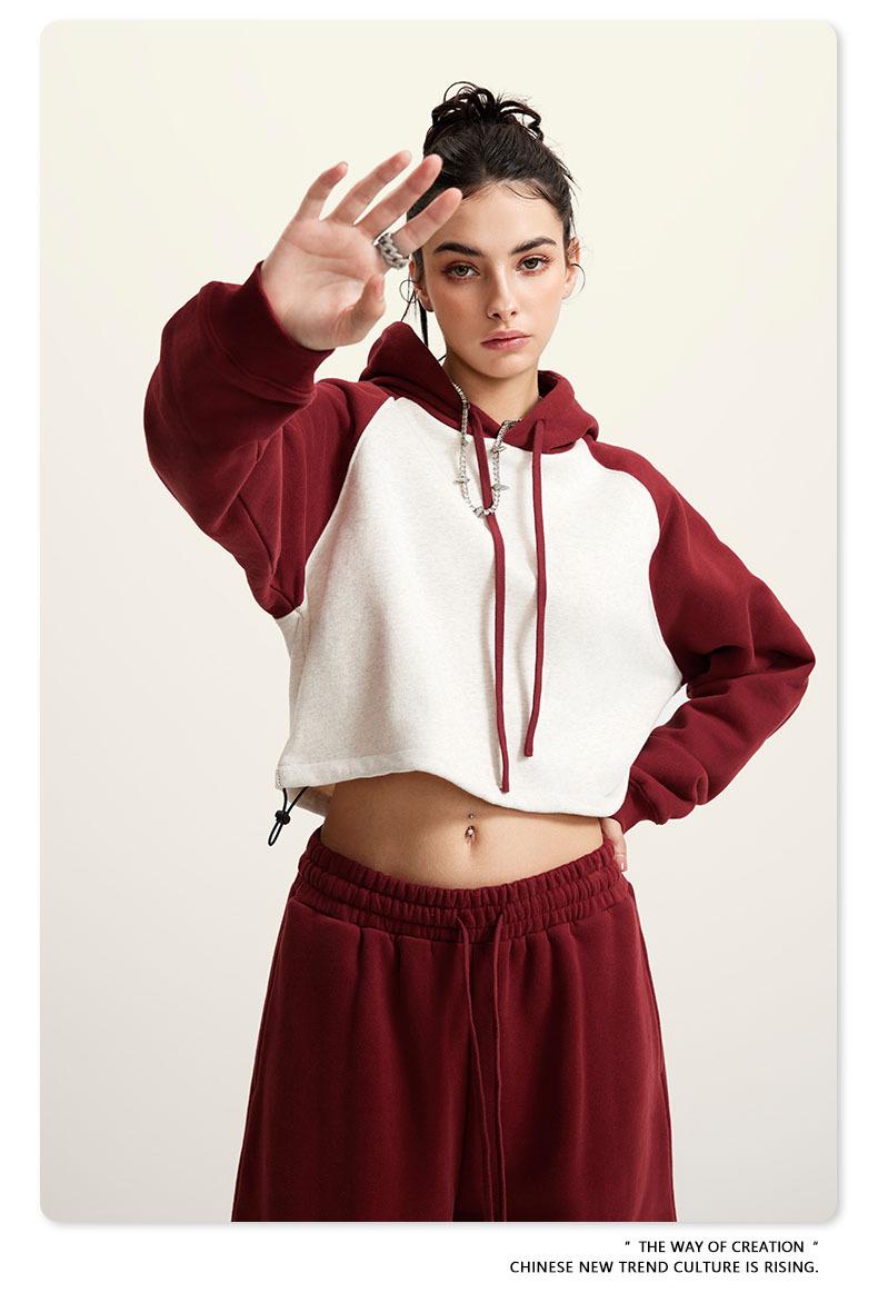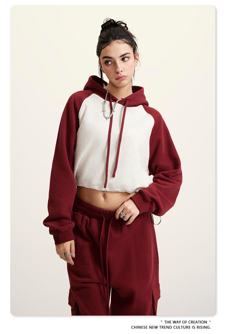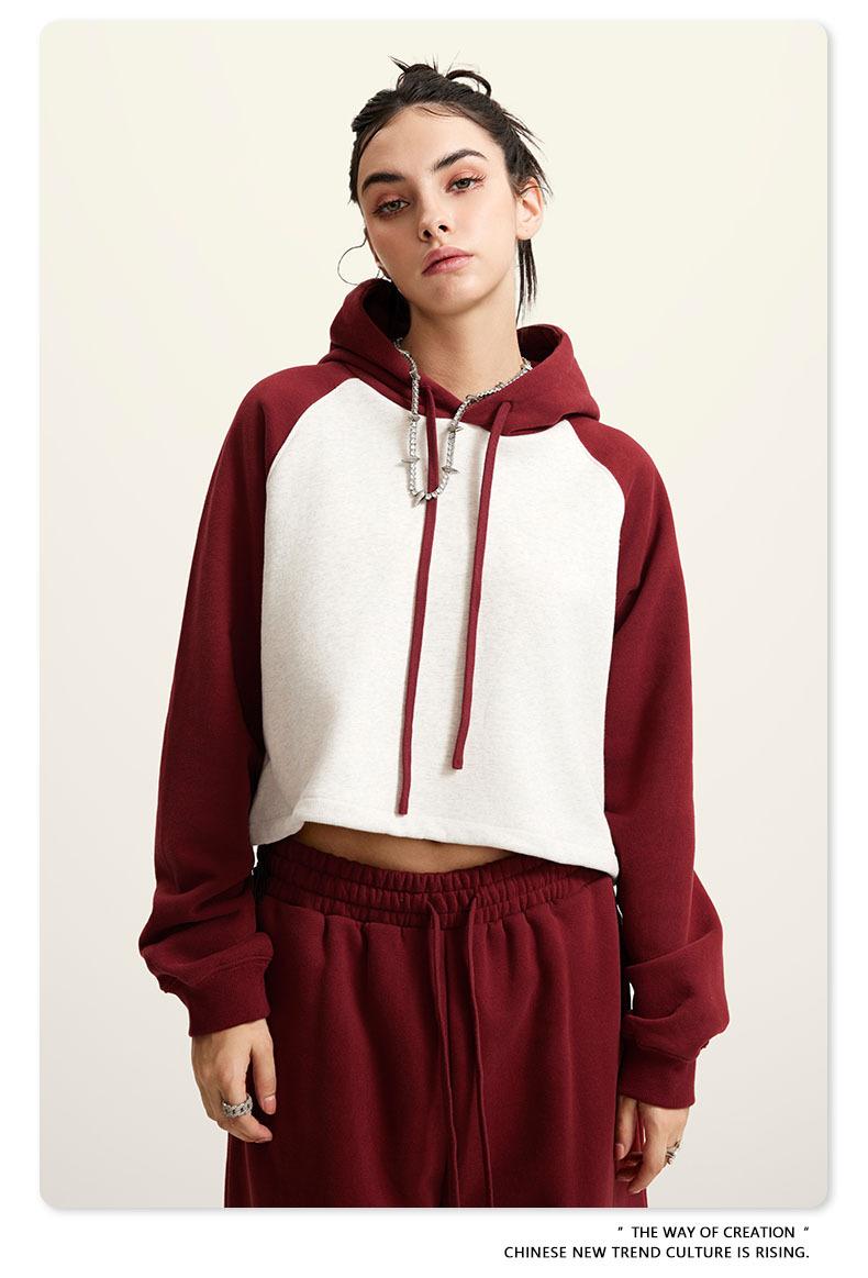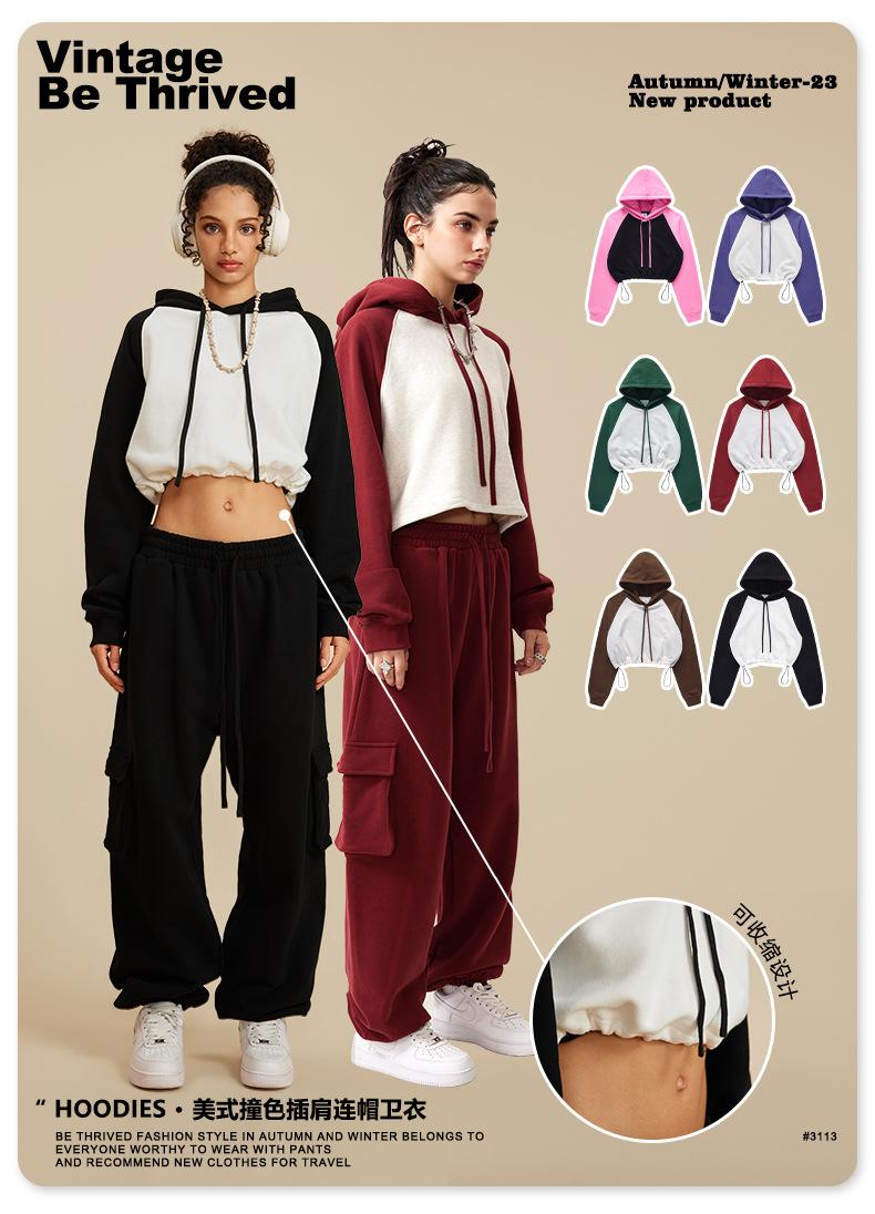 Ropa de Mujer Otoño e Invierno 2025 Sudadera Corta con Capucha Estilo Raglán Americano en Contraste Sexy Trendy Marca Sudadera con Capucha para Mujer