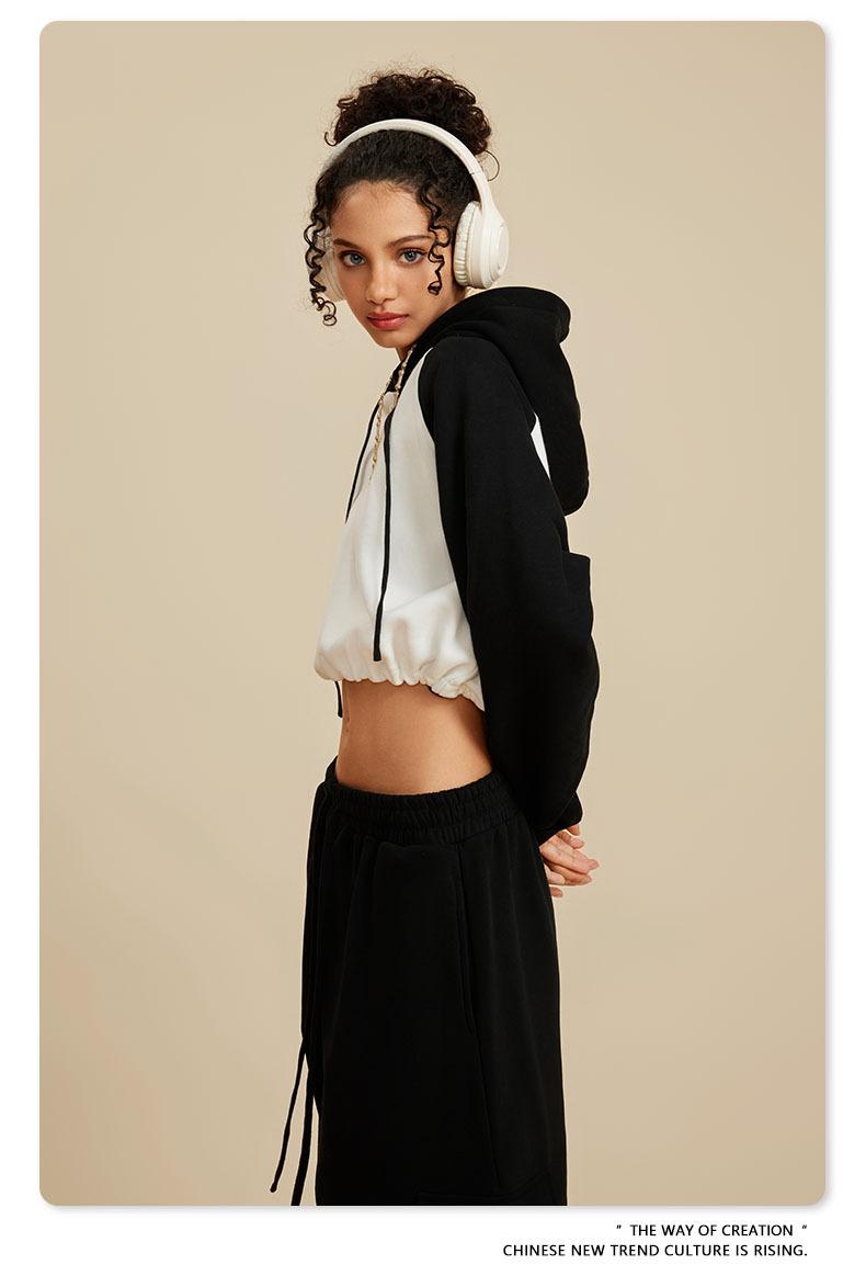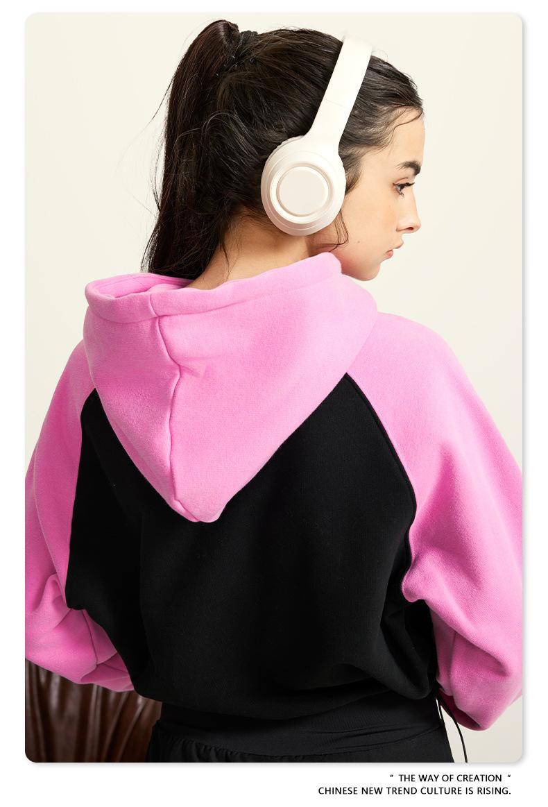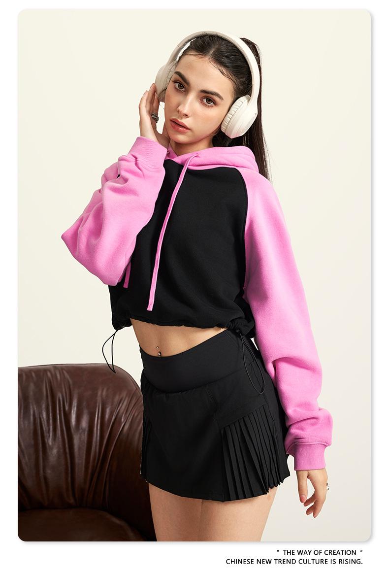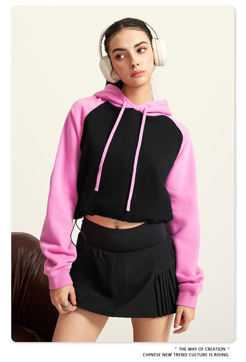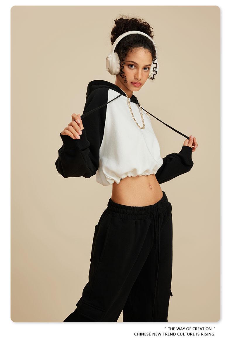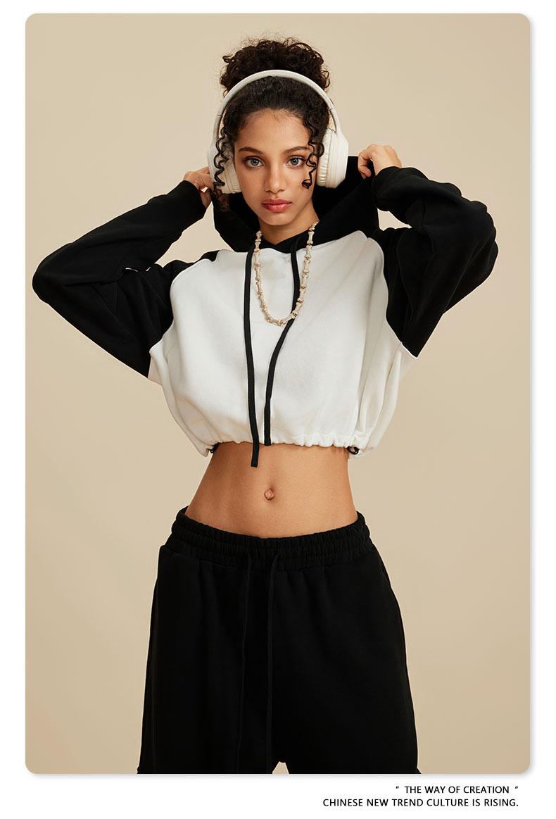 Ropa de Mujer Otoño e Invierno 2025 Sudadera Corta con Capucha Estilo Raglán Americano en Contraste Sexy Trendy Marca Sudadera con Capucha para Mujer