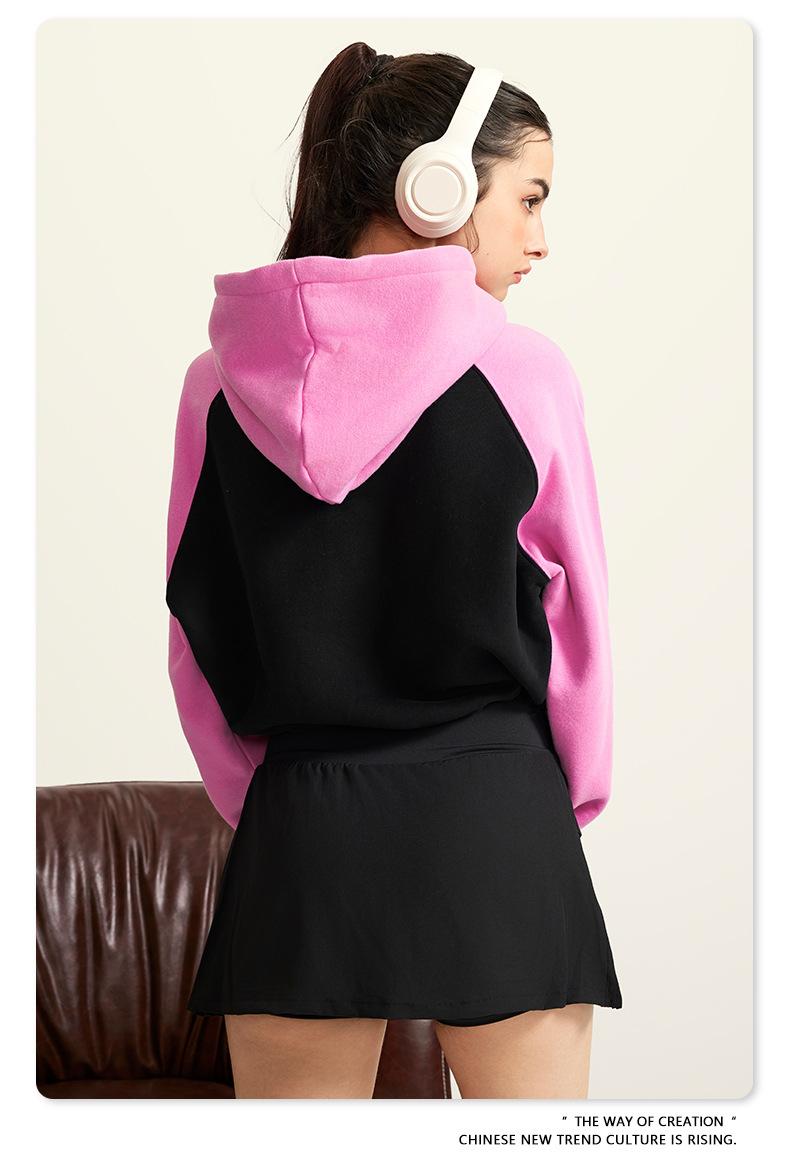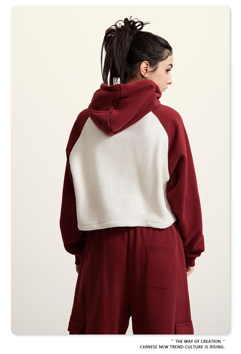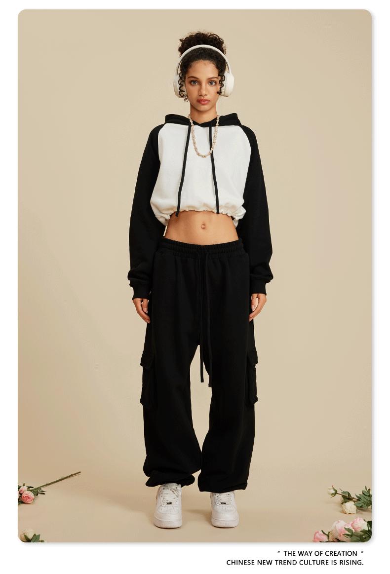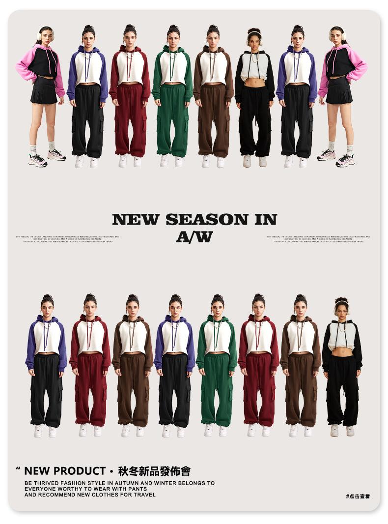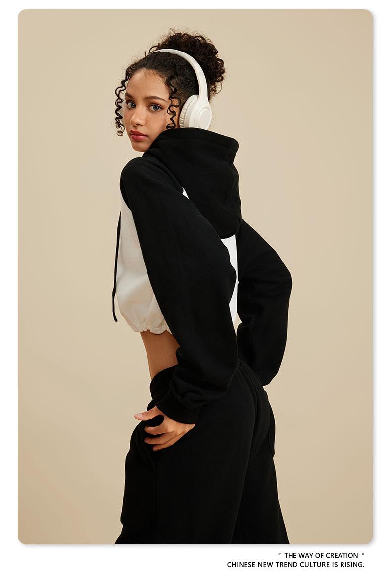 Ropa de Mujer Otoño e Invierno 2025 Sudadera Corta con Capucha Estilo Raglán Americano en Contraste Sexy Trendy Marca Sudadera con Capucha para Mujer