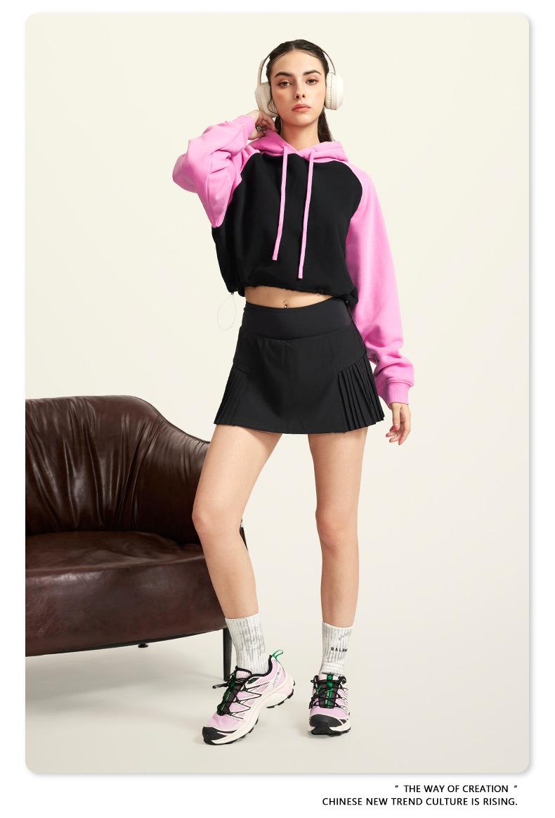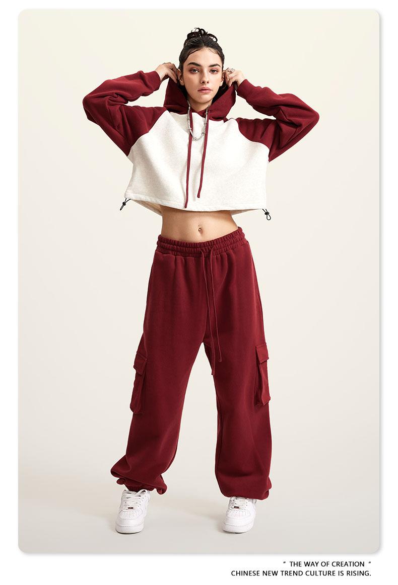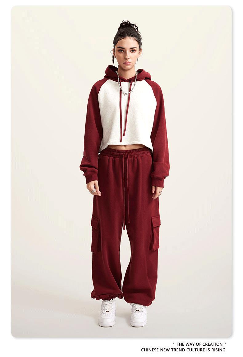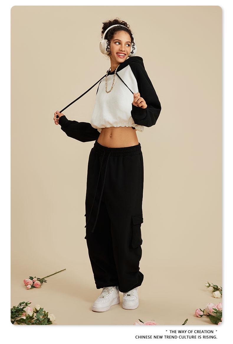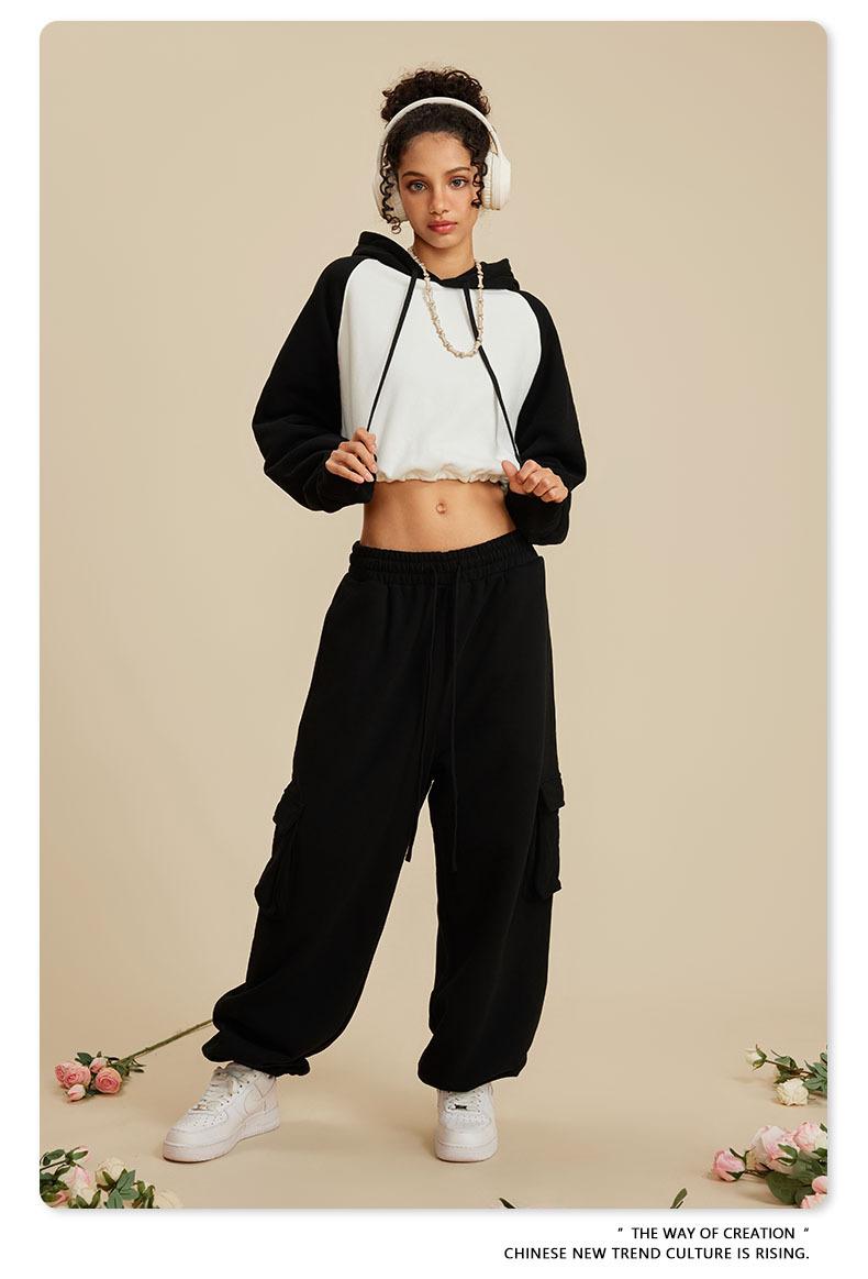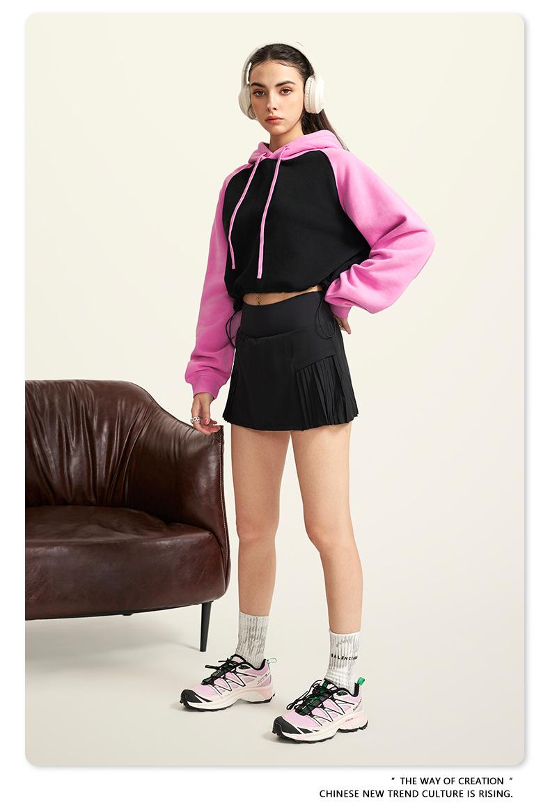 Ropa de Mujer Otoño e Invierno 2025 Sudadera Corta con Capucha Estilo Raglán Americano en Contraste Sexy Trendy Marca Sudadera con Capucha para Mujer