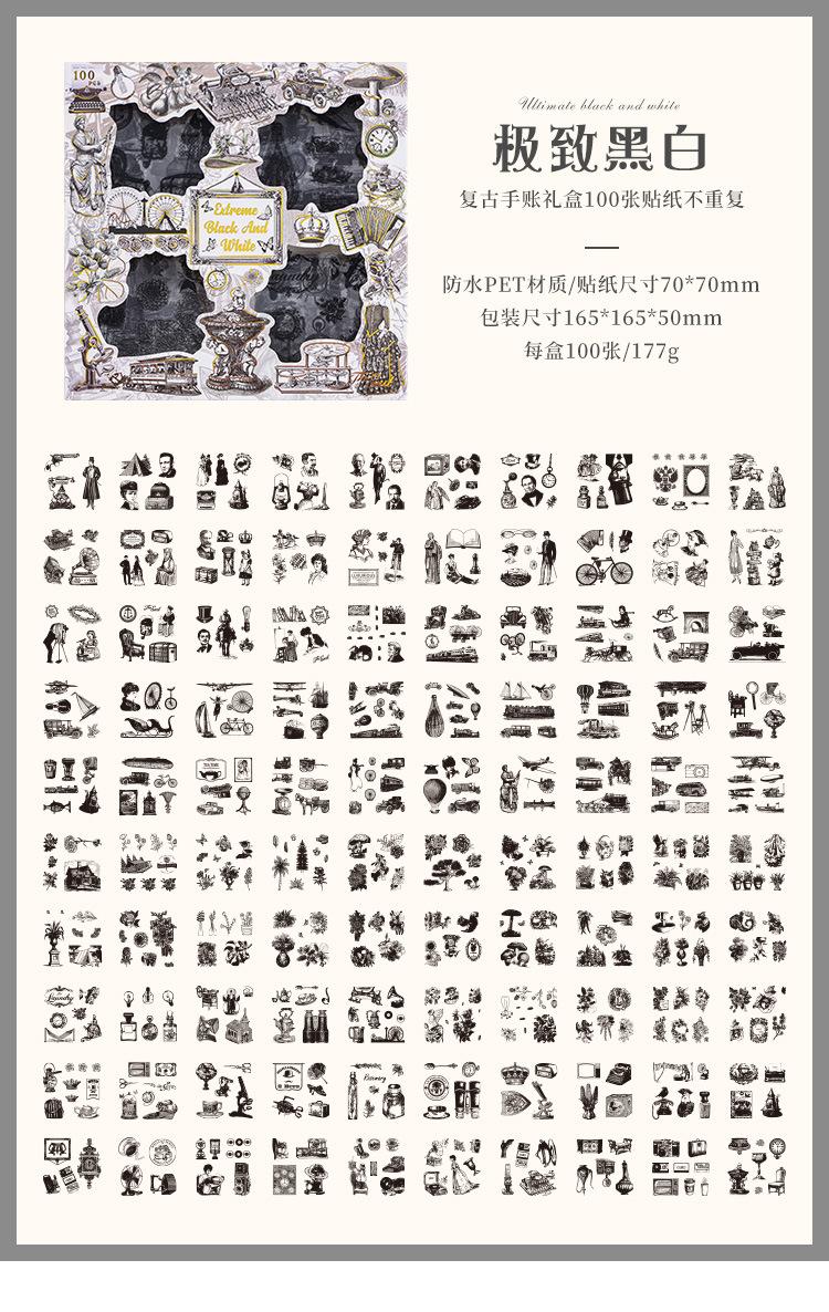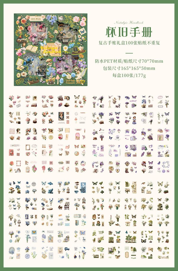Yuezhen - 100 pegatinas de caja de regalo retro transfronterizas, pegatinas creativas para manualidades, pegatinas para cuentas de mano para mascotas y niños.
