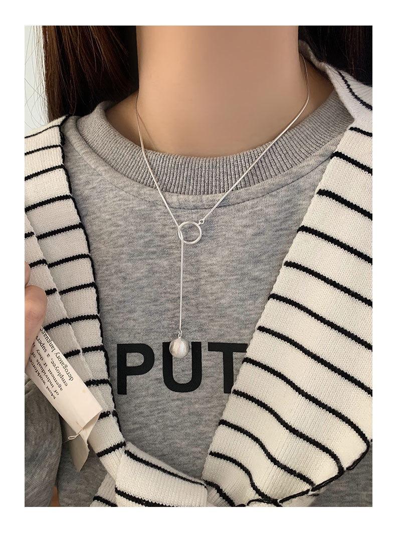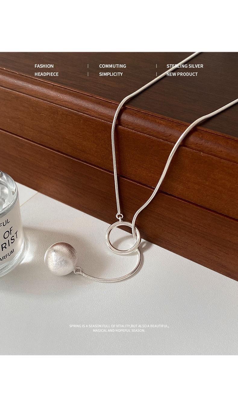 Collar con colgante de bola geométrica esmerilada para mujer, moda simple para combinar con todo, temperamento de borla, cadena de clavícula de plata S925, cadena para suéter