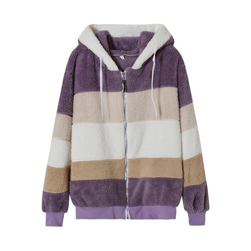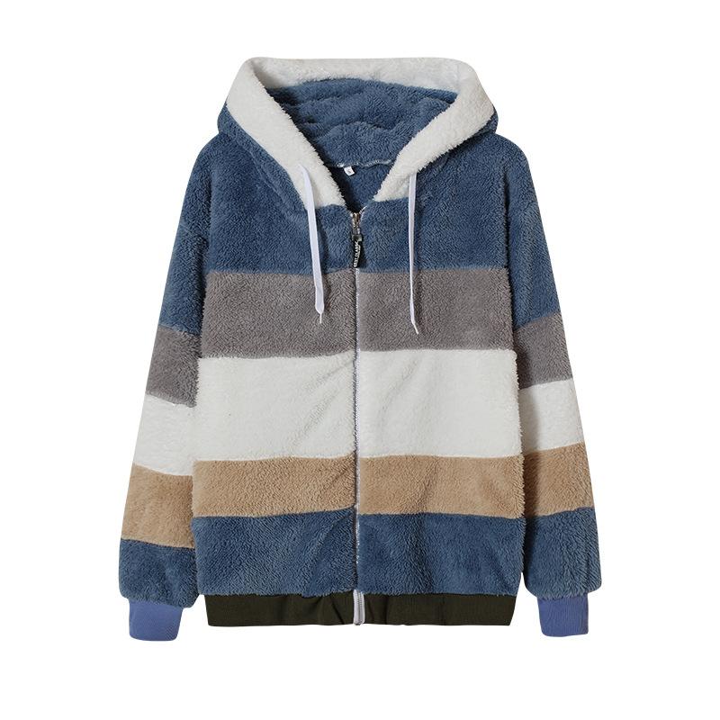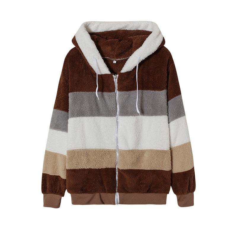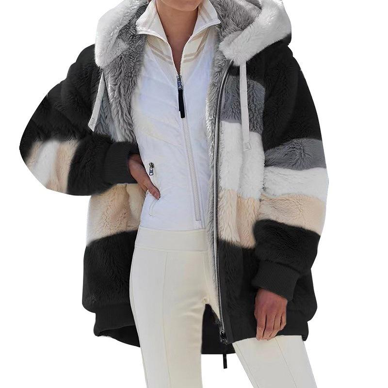 Chaqueta con capucha multicolor de felpa suelta para mujer, nueva, de Amazon Wish Independent Station, la más vendida, otoño/invierno, 9703#2023