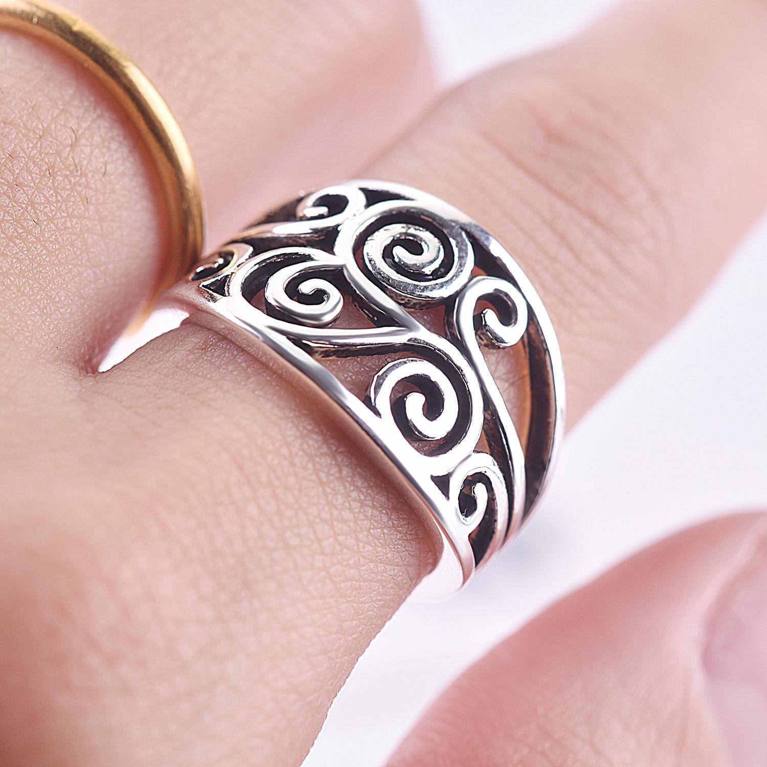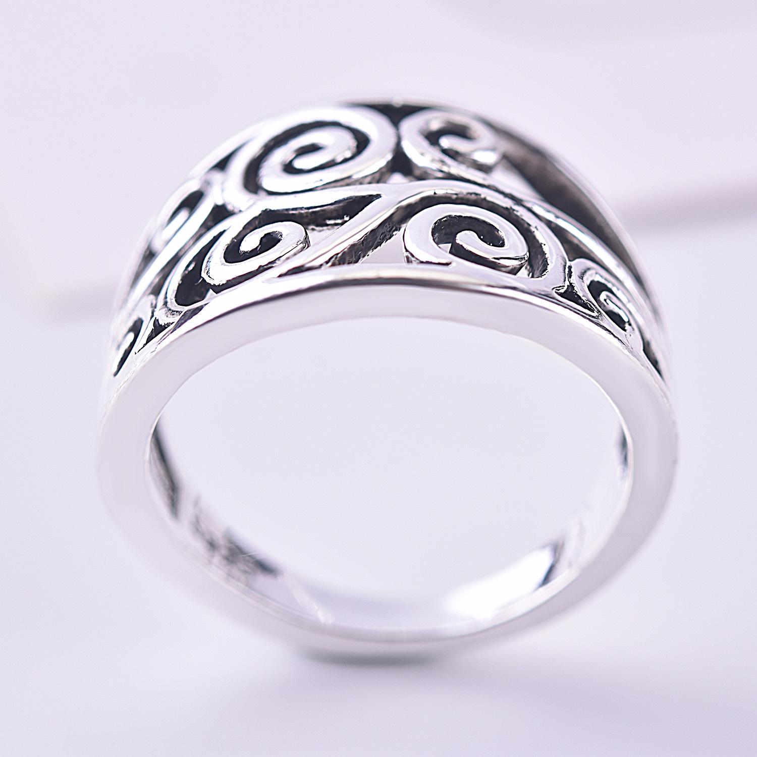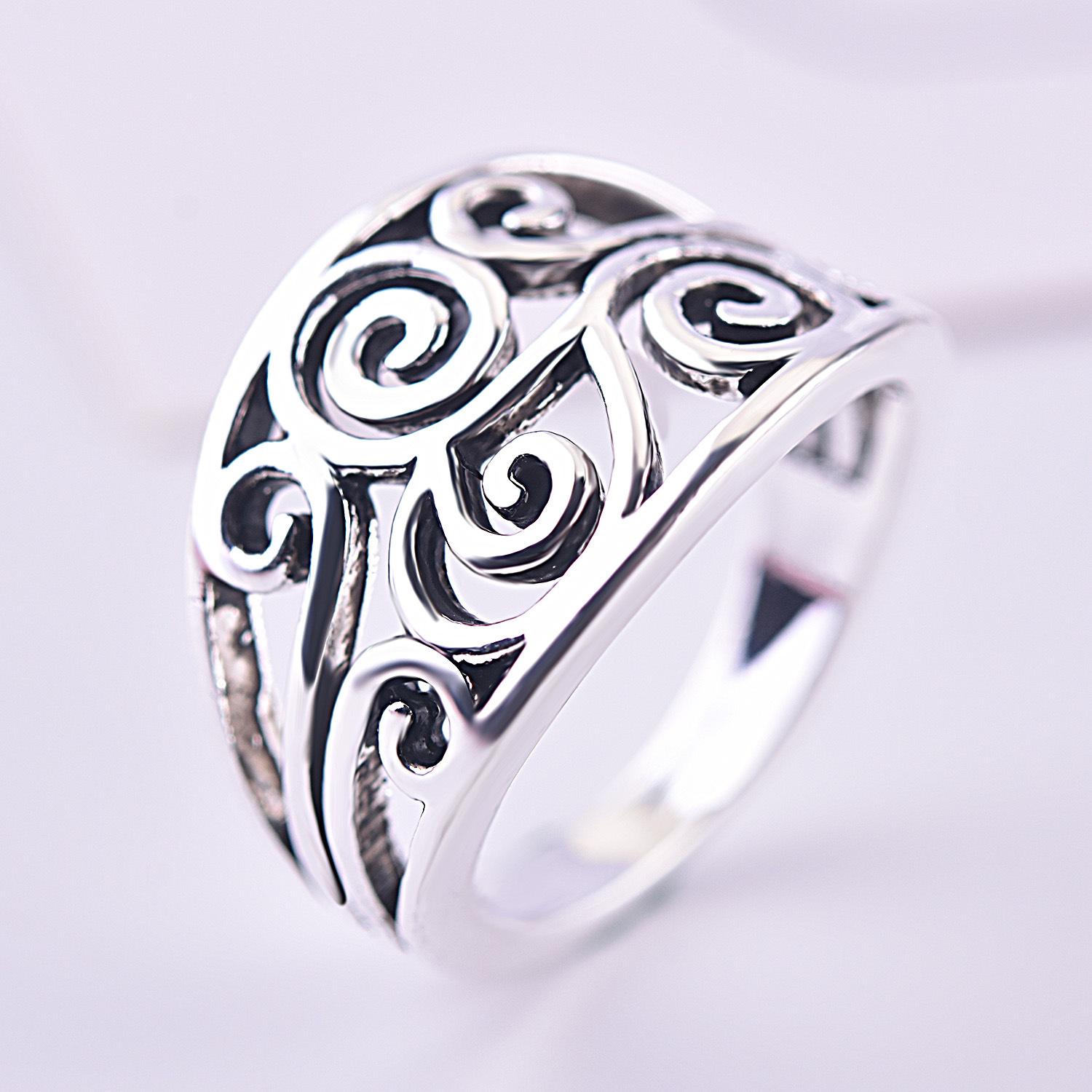 Zhen Rong deseo más vendido nuevo anillo de flor hueca comercio exterior europeo y americano retro plata tailandesa negro anillo de compromiso para mujer