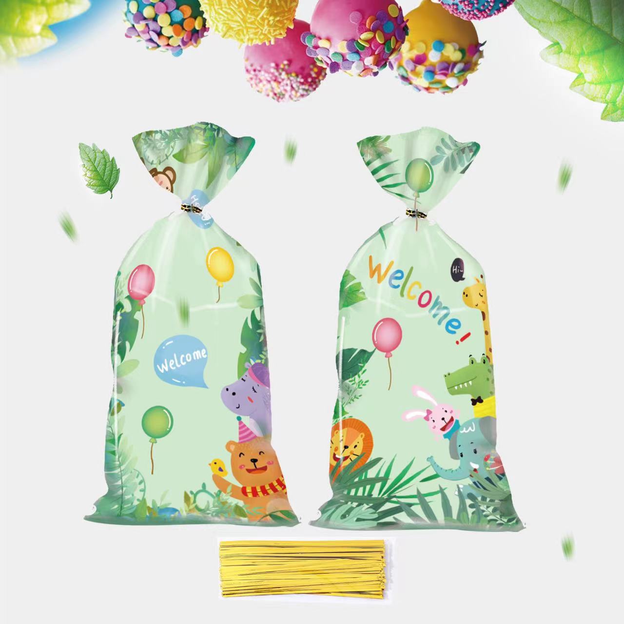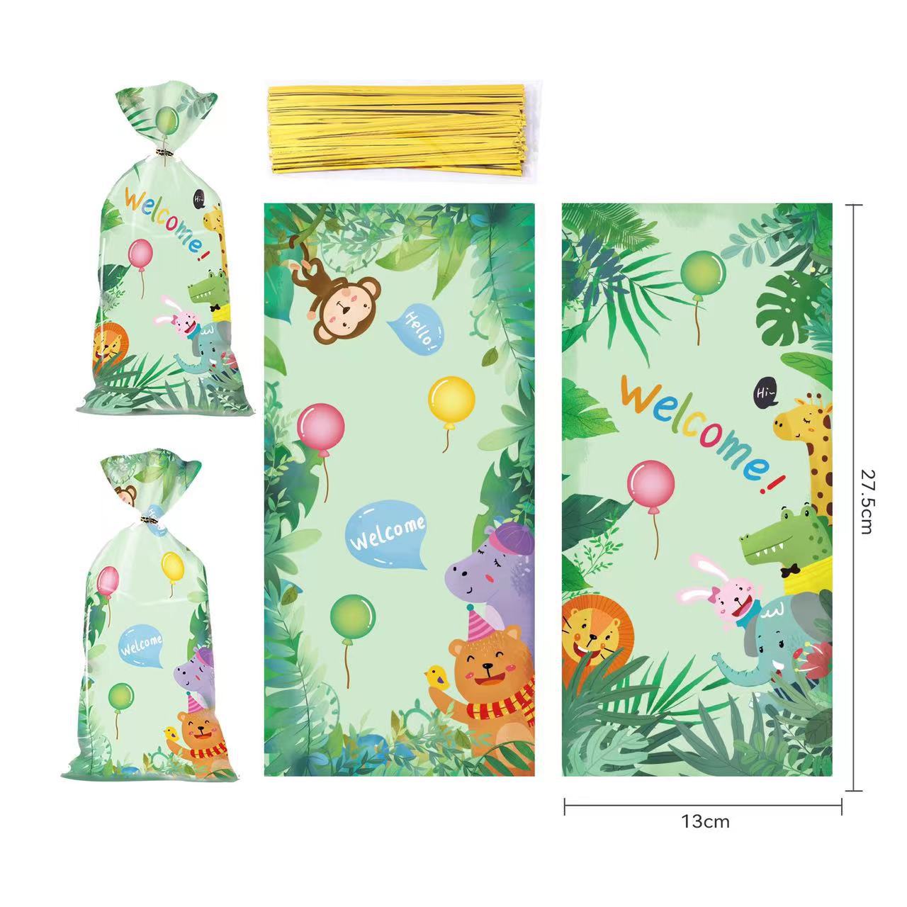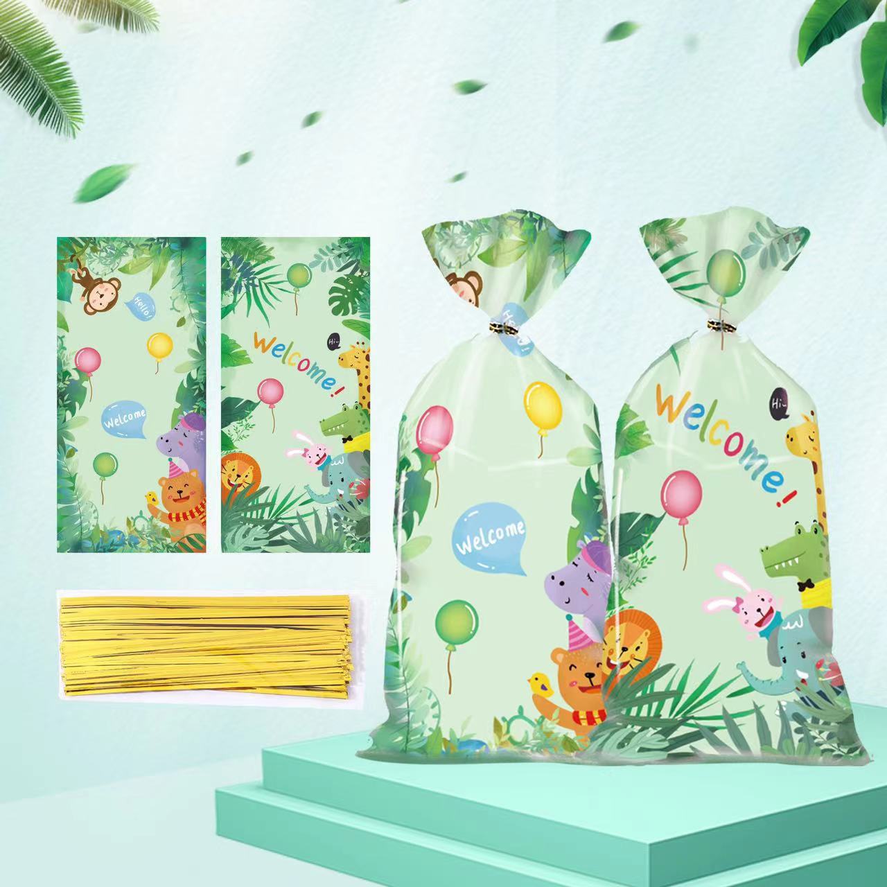 Bolsa de dulces de animales de la jungla nueva 2025, bolsa de embalaje de animales para galletas y snacks, bolsa de embalaje para regalos opp, bolsa navideña