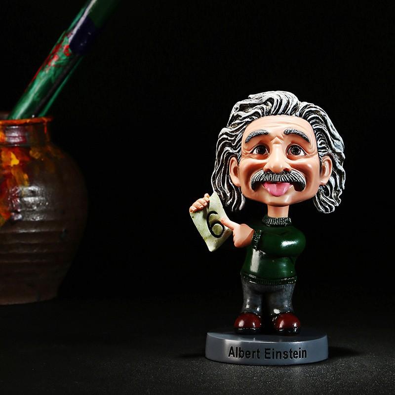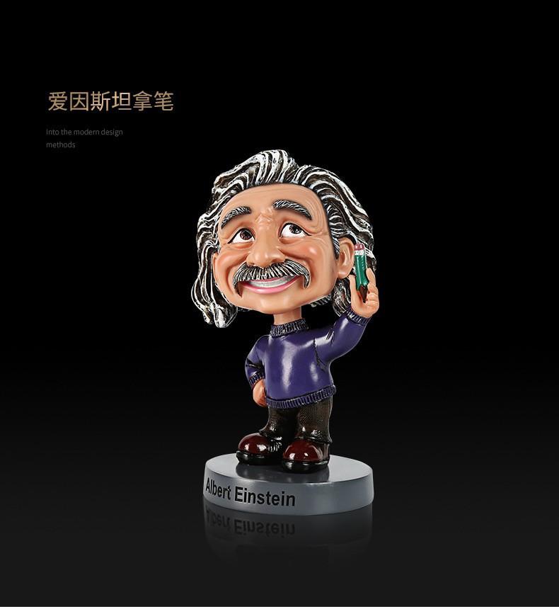 Caja ciega hecha a mano de Einstein, muñeca de resina para el hogar, adornos para sala de estar, muñeca con cabeza móvil, obra de arte de escritorio transfronteriza