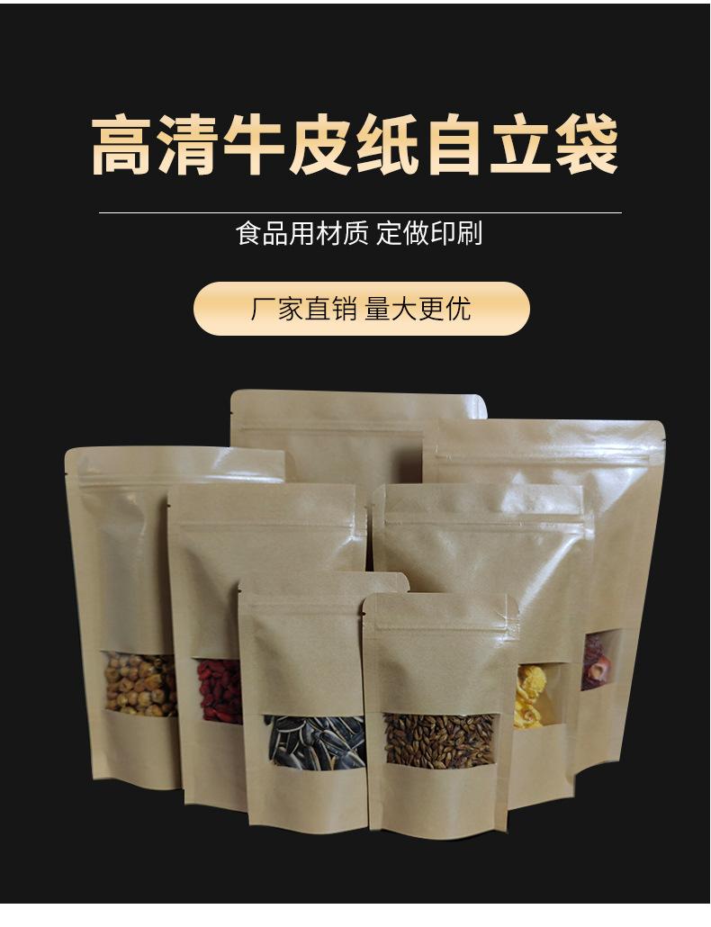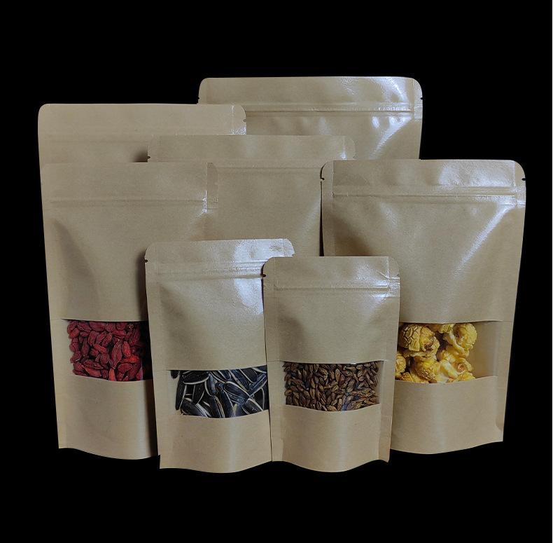 Bolsa de Papel Kraft con Ventana, Bolsa Autosellable de Papel Kraft, Bolsa para Empaque de Fruta Deshidratada, Bolsa Autosellable para Alimentos y Té, Material de Grado Alimenticio