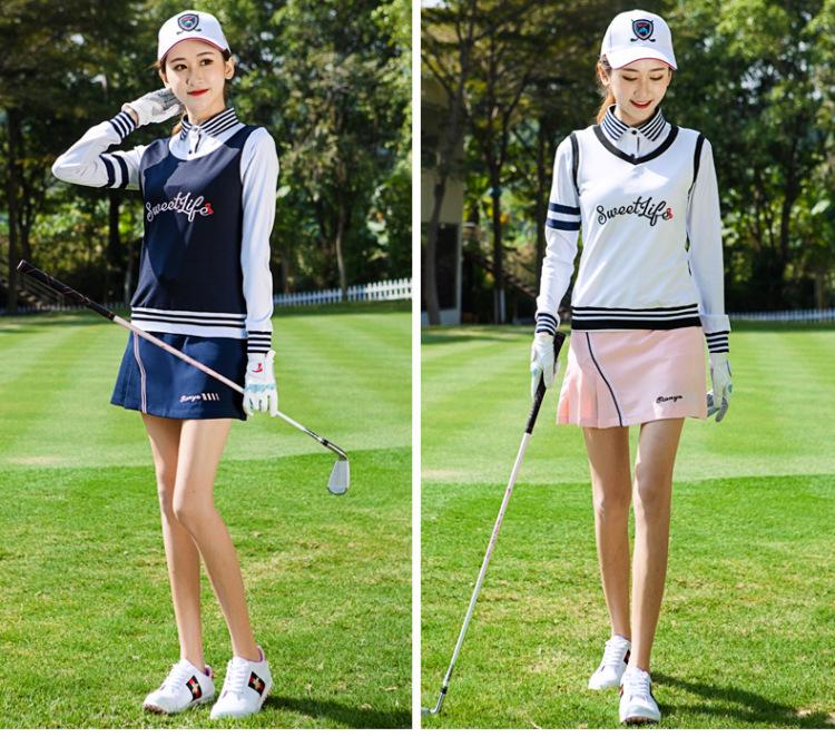 Nueva ropa de golf para otoño e invierno, chaleco cálido con cuello en V para mujer, estilo británico, con chaleco tipo jersey.