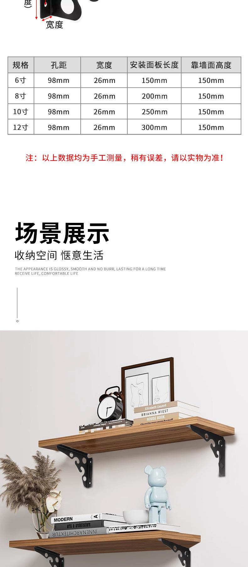 Cold rolled steel triangle bracket [dual-purpose bracket] -6 inch (black) one price