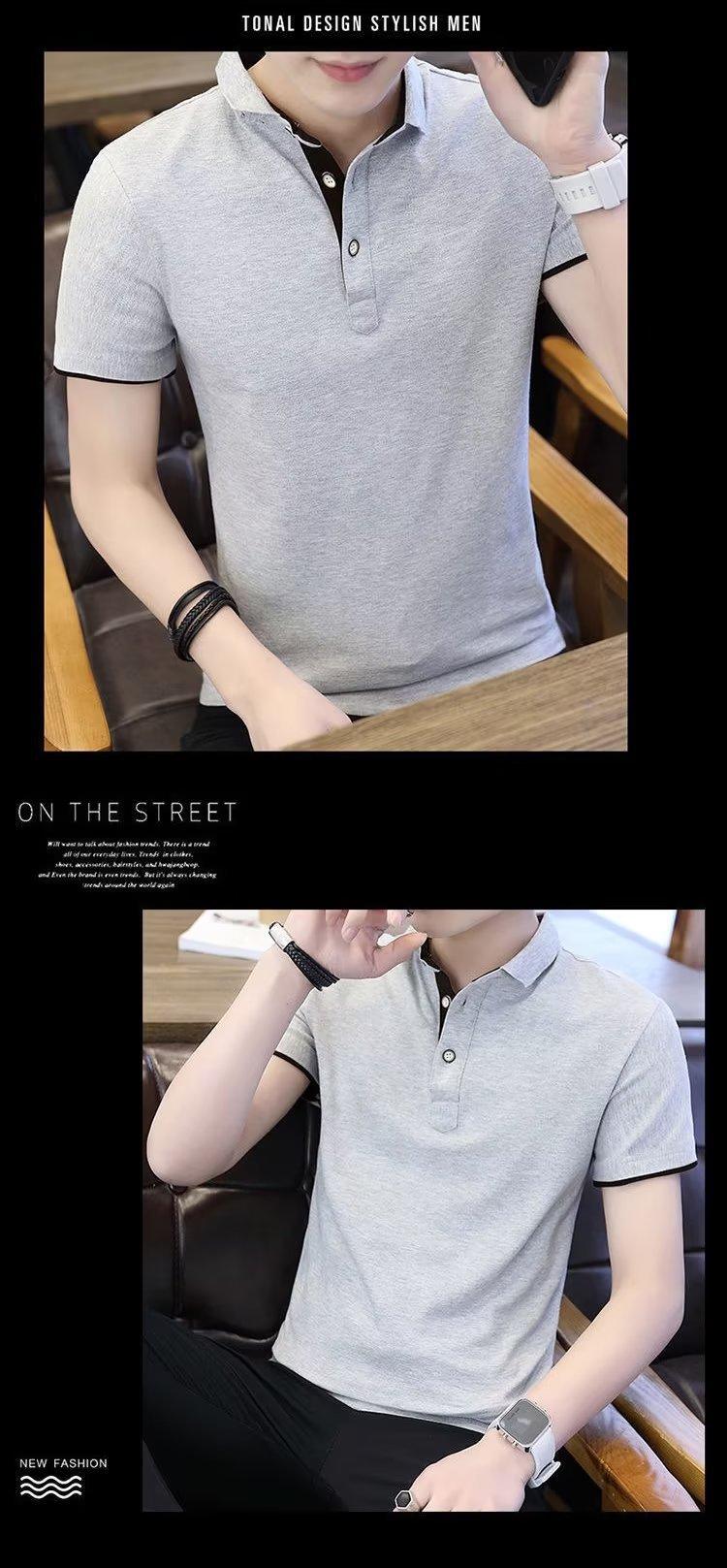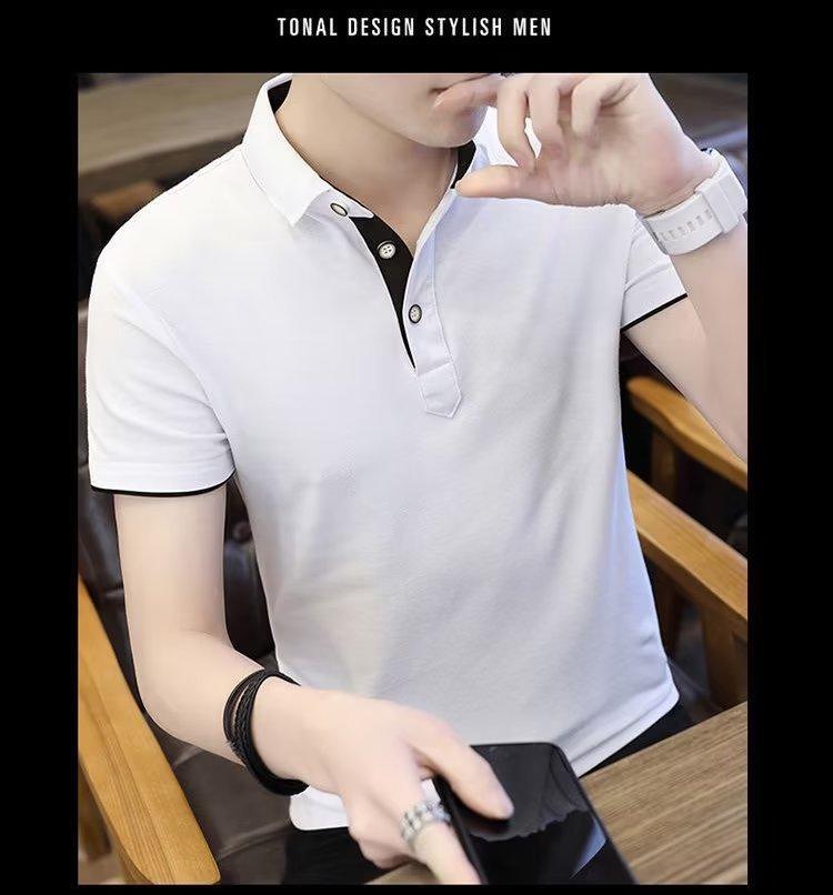Camiseta de manga corta de marca de moda de verano, polo de solapa para hombre, estilo coreano, nueva camiseta de cuello para hombre a juego con el color, moda transfronteriza