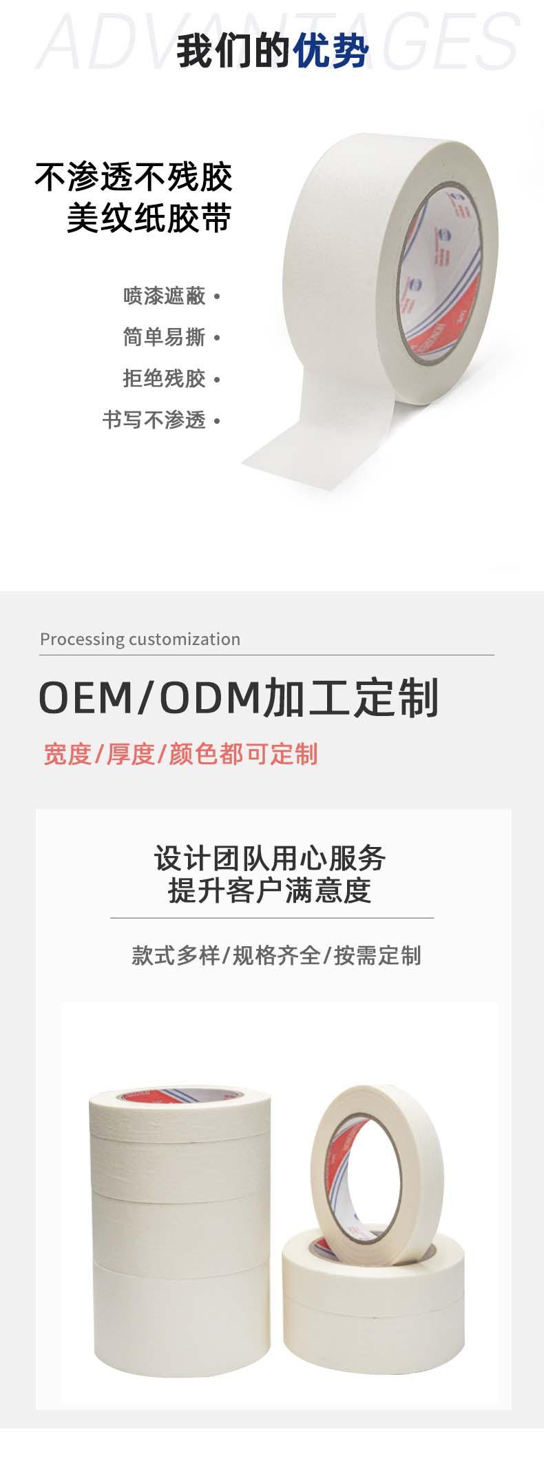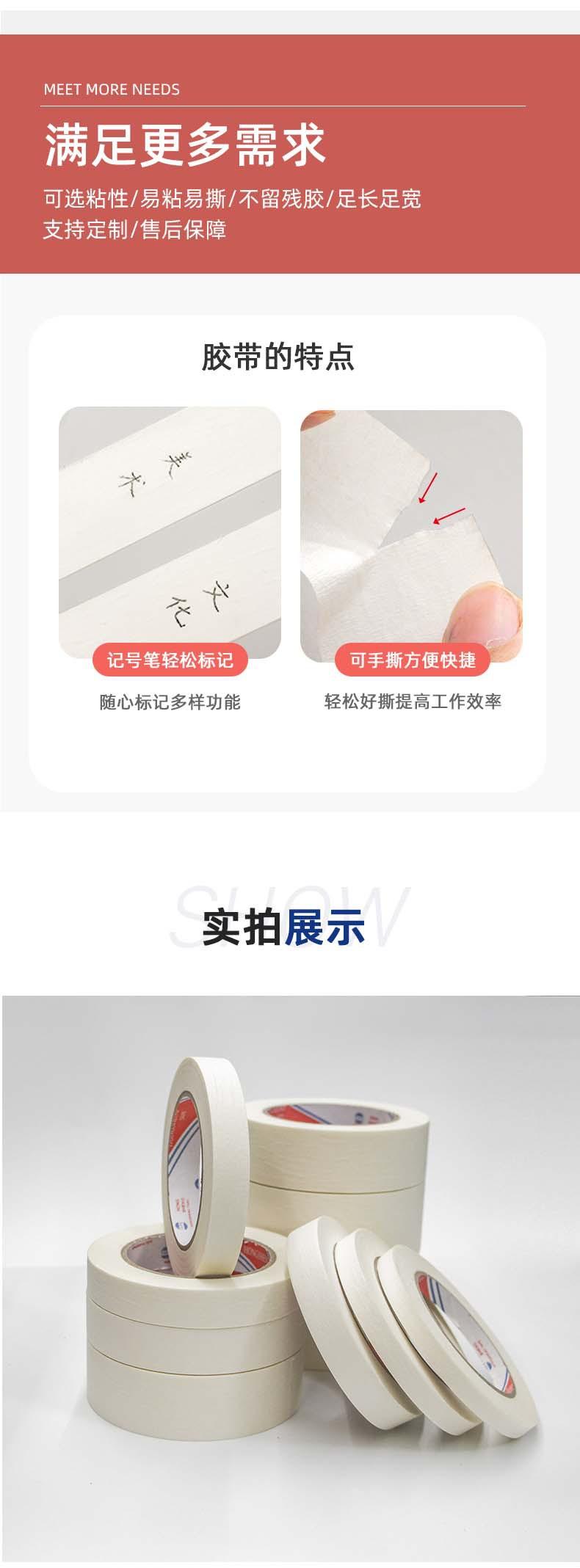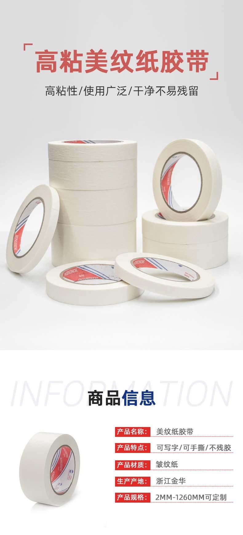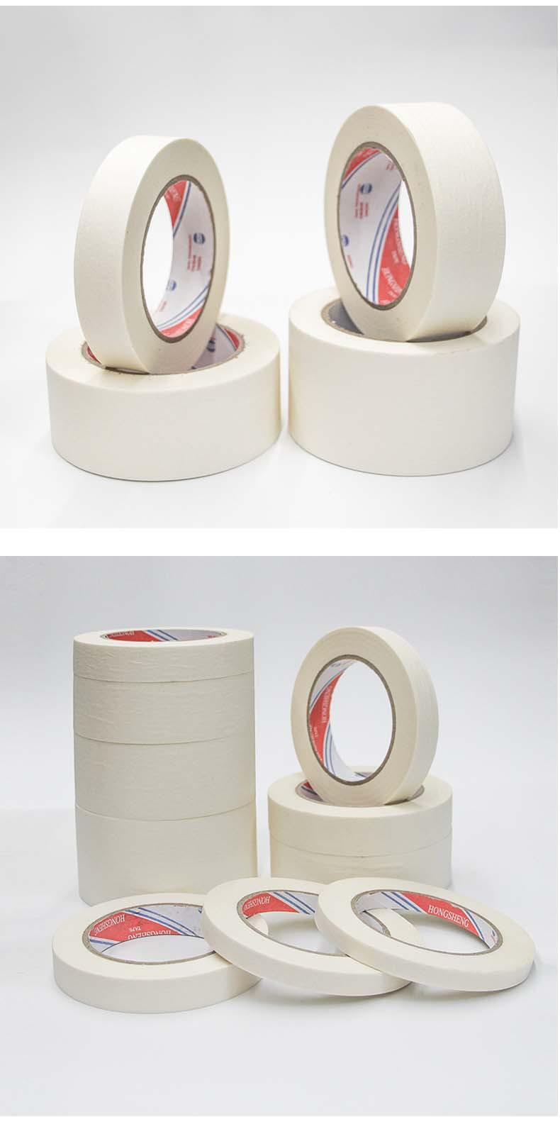 Cinta adhesiva de papel de enmascarar al por mayor, para decoración de pintura, de una sola cara, blanca, lisa, de color, fácil de rasgar a mano.