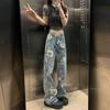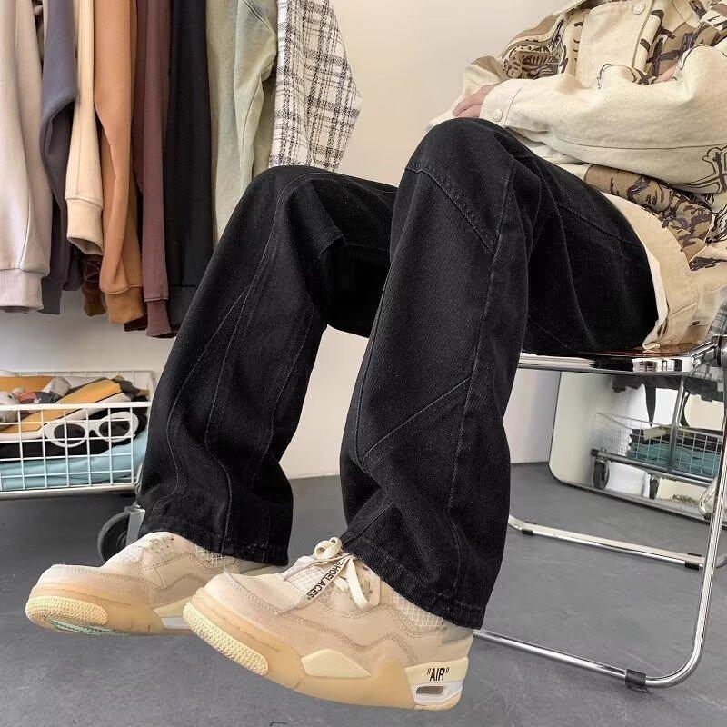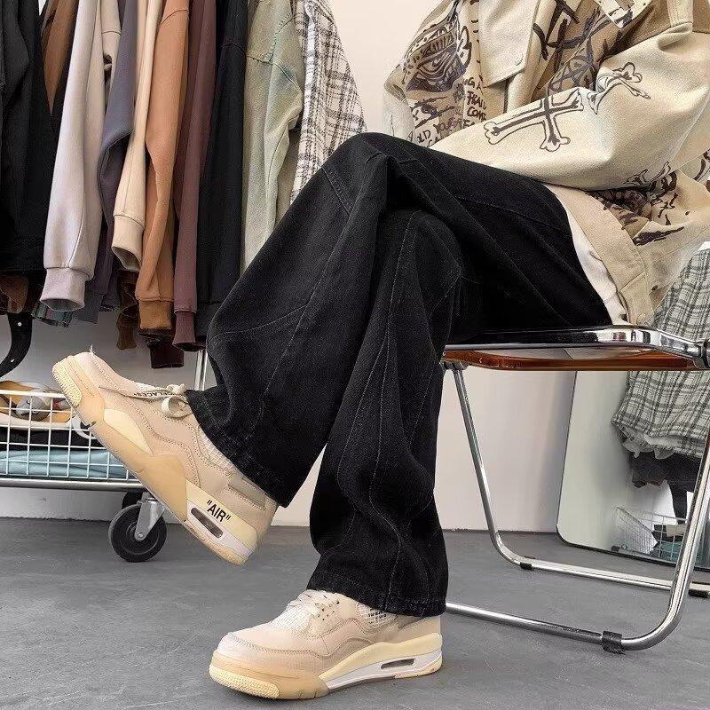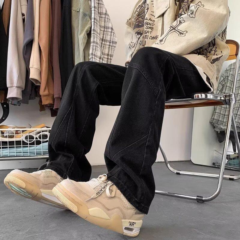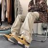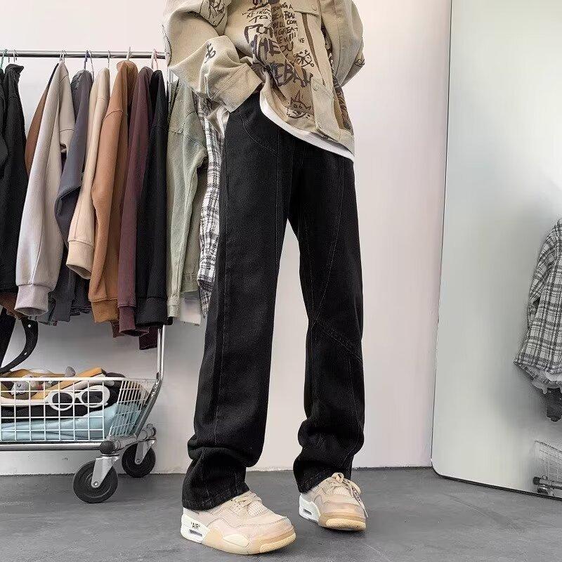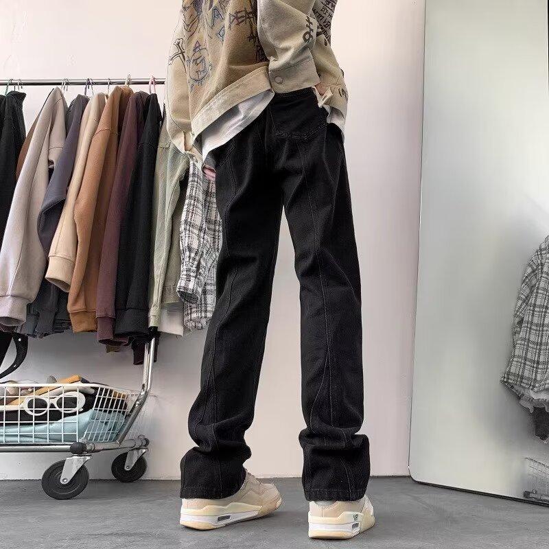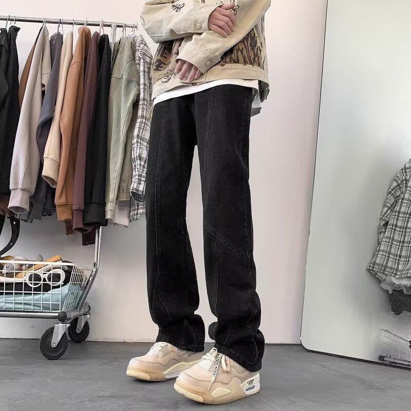 Hermosa moda High Street jeans lavados teñidos de barro amarillo diseño de línea marca de moda pantalones rectos ajustados 2024