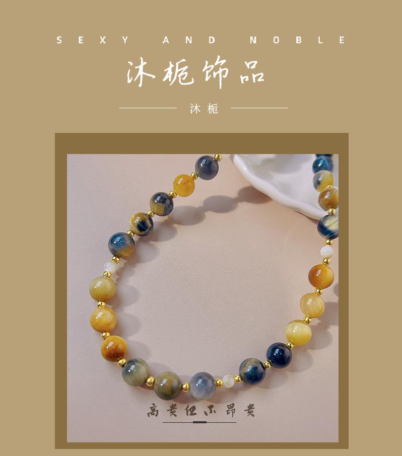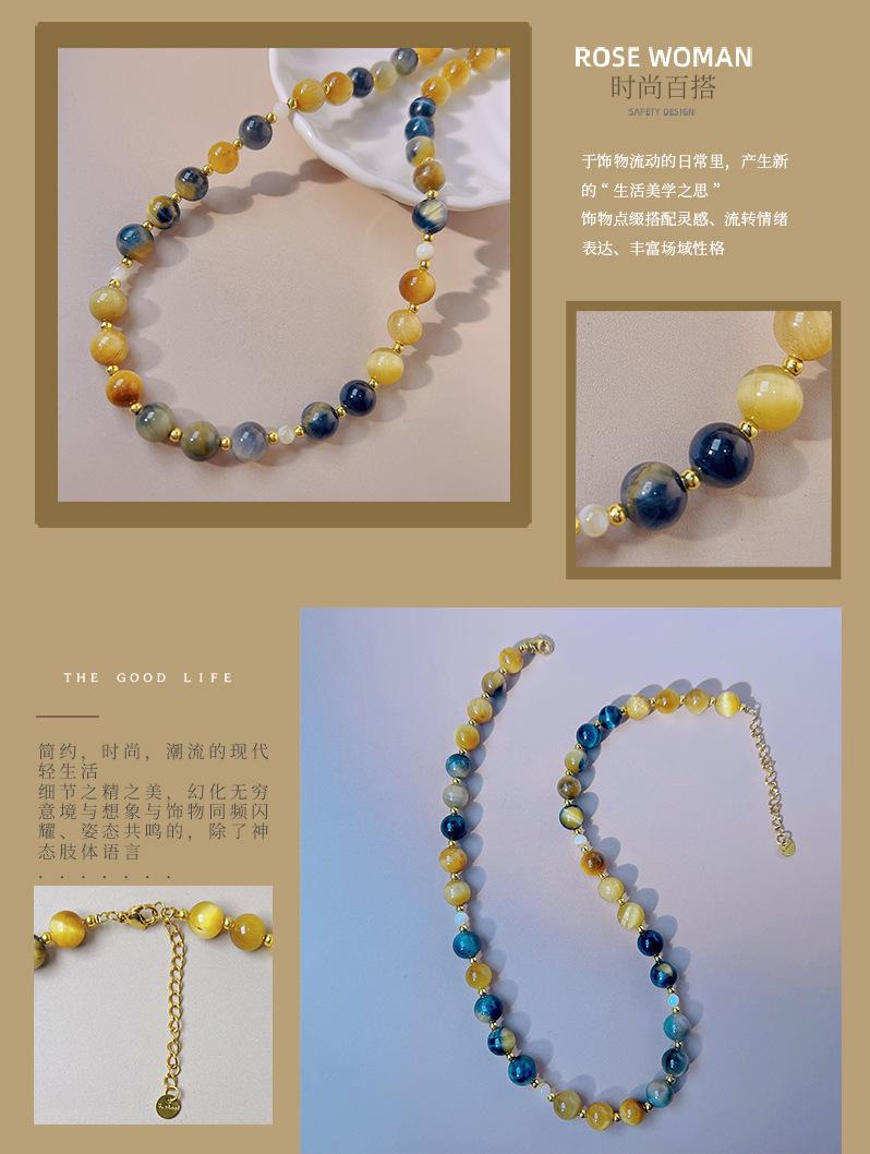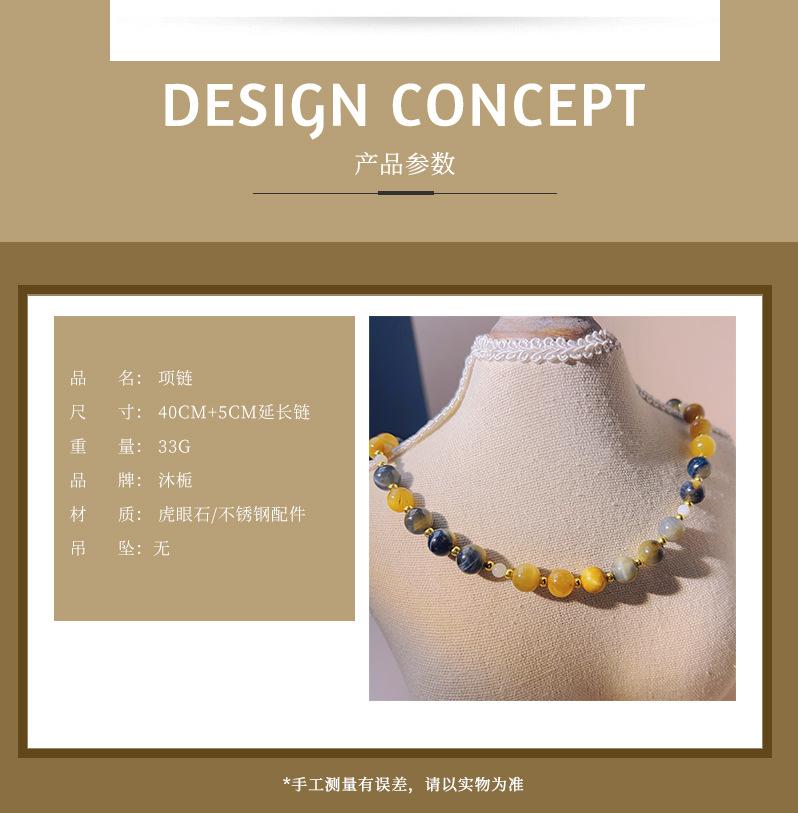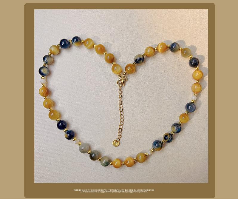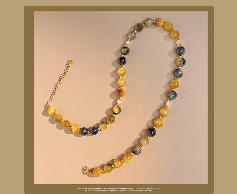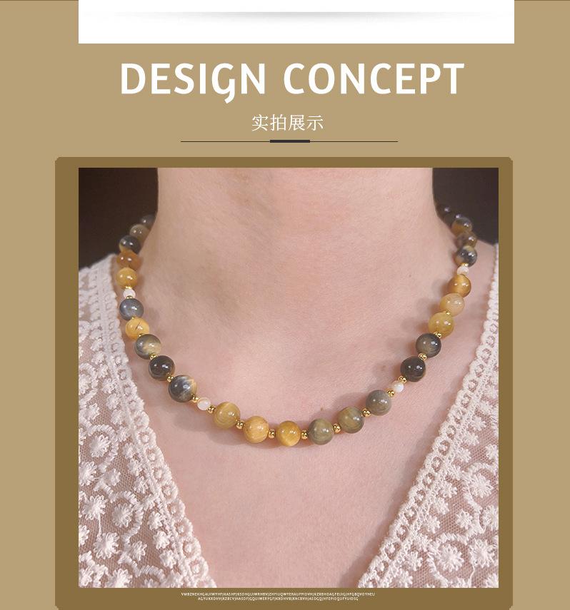 Collar de cuentas hecho a mano con piedra de ojo de tigre natural, diseño retro artístico de nicho para mujer, collar de tigre de fantasía de color Maillard