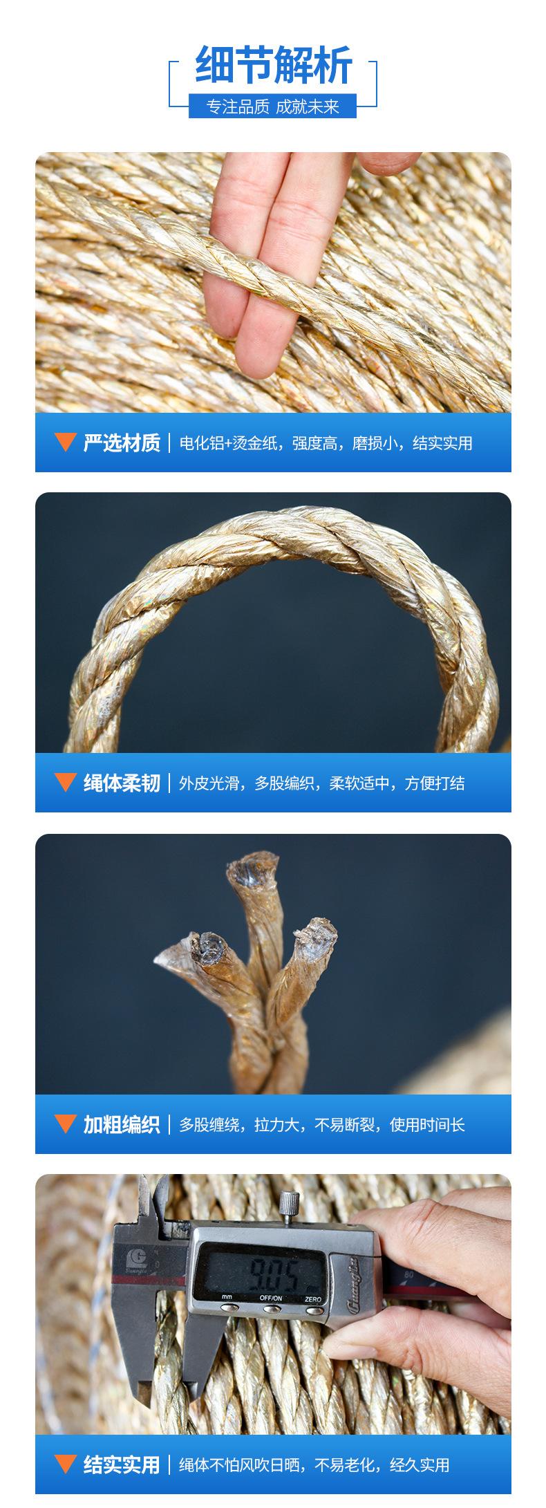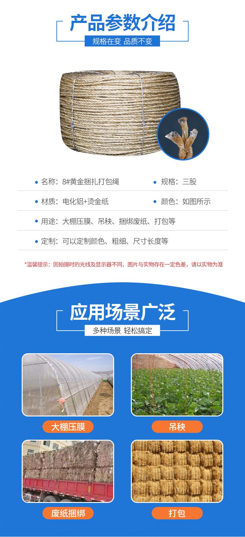 Cuerda de Plástico de 8mm Cuerda para Atar Cuerda para Empacar Papel de Desecho Cuerda Dorada Embalaje Cuerda para Atar Fabricante Venta al por Mayor
