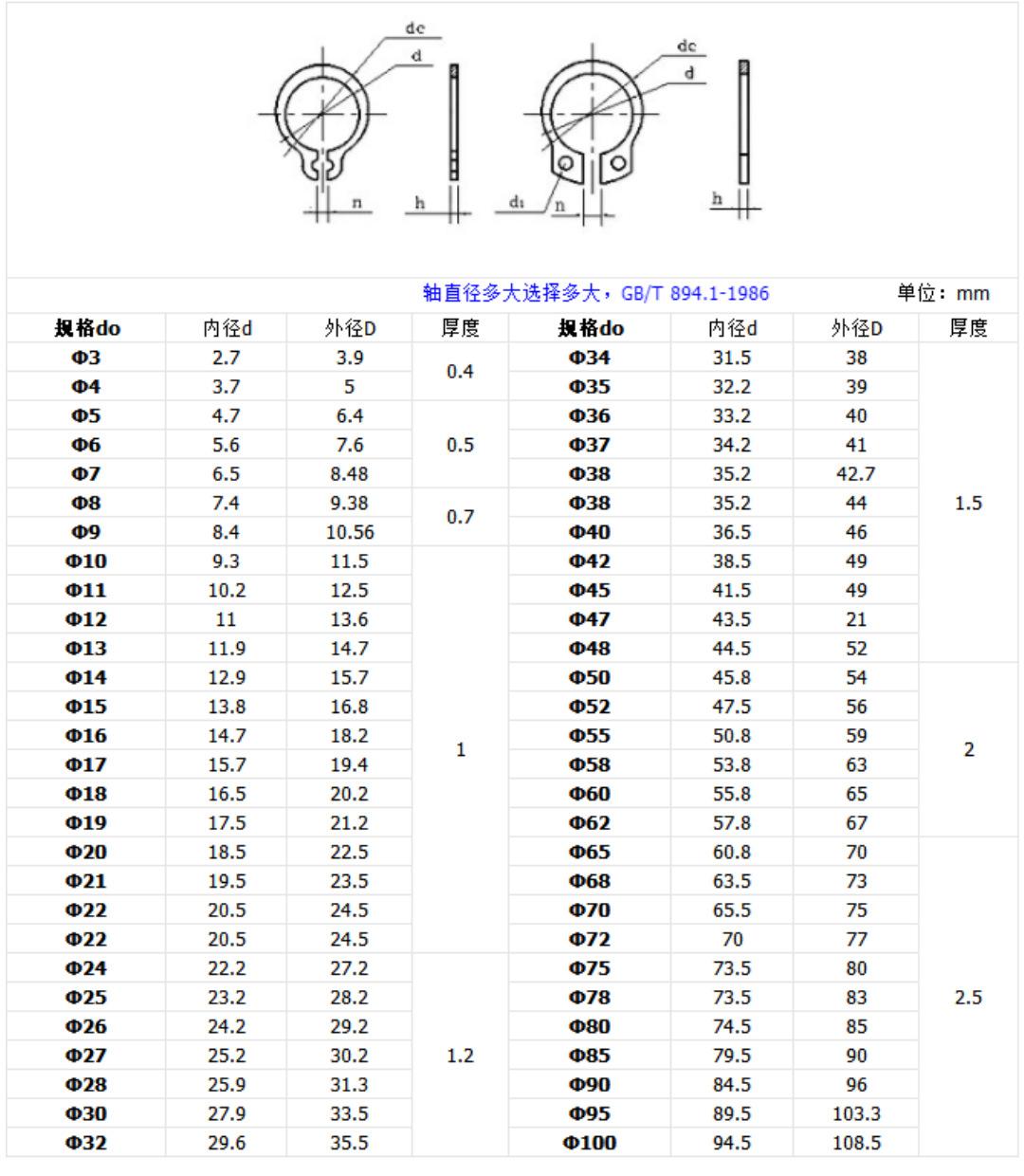 Gb894 Anillo de Retención de Eje Acero Inoxidable 304 M6M8M10-M80 Circlip Tipo C Clip de Eje Clip Externo Anillo a Presión Duradero