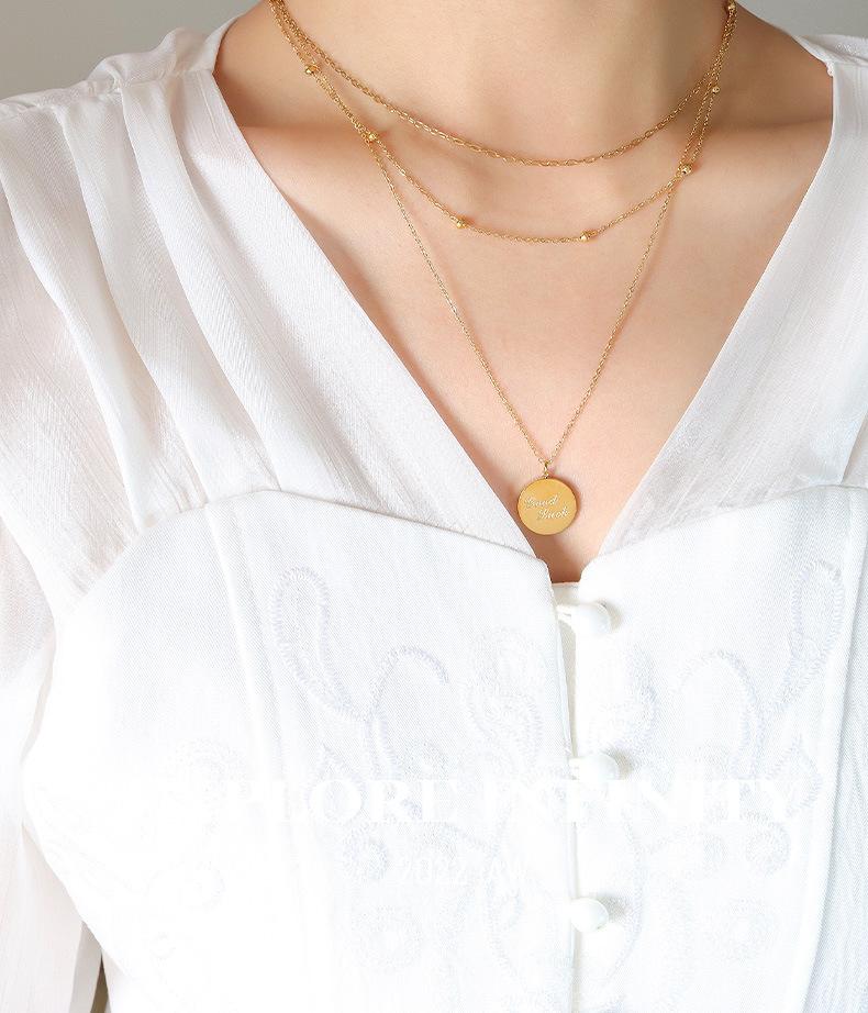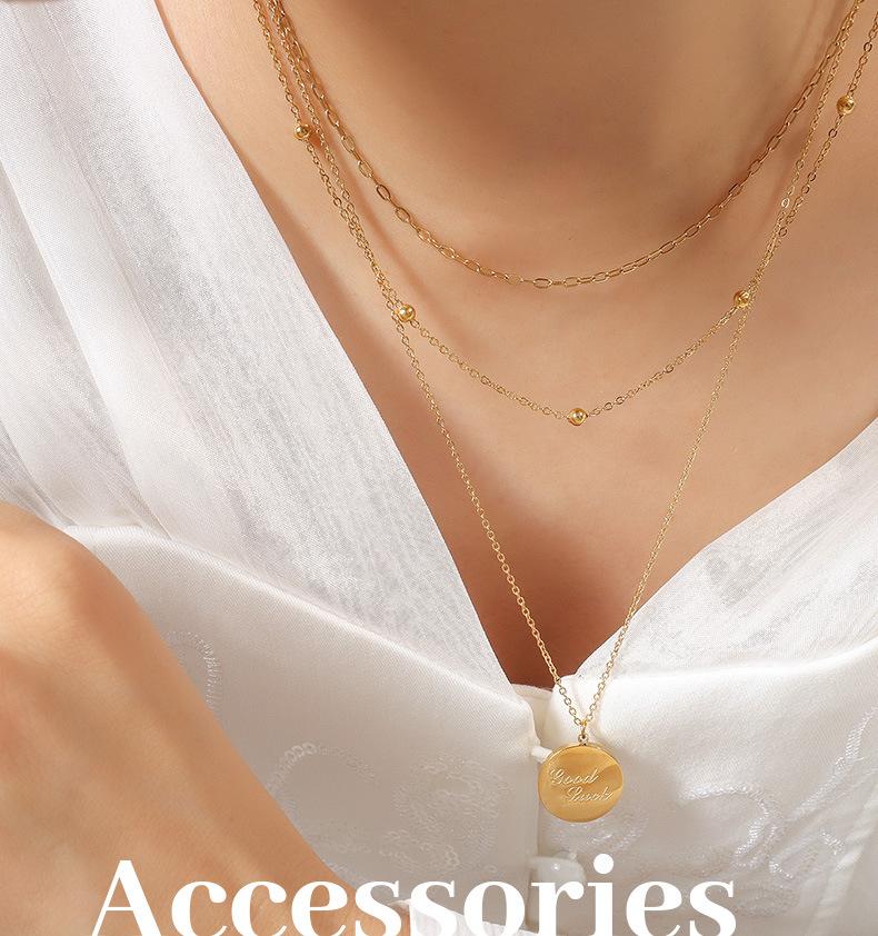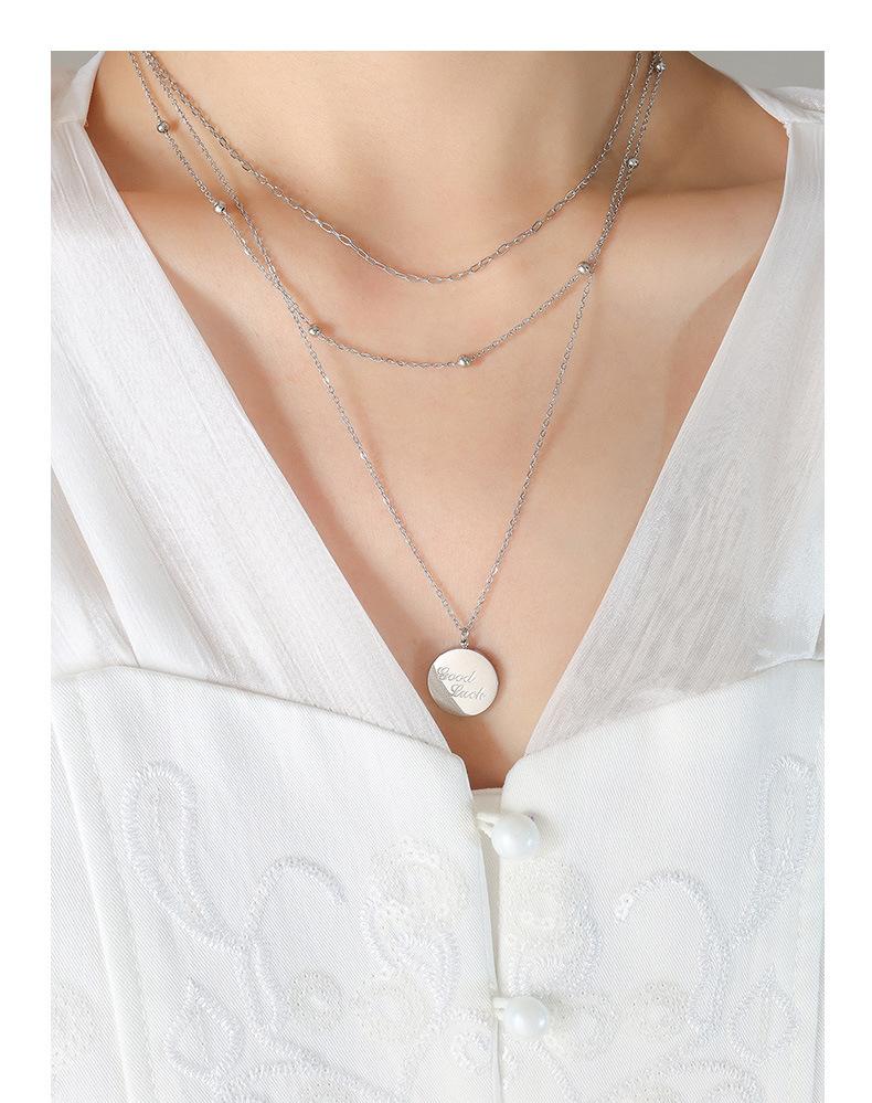 P681-steel three-layer necklace, P681-gold three-layer necklace, P681-rose three-layer necklace