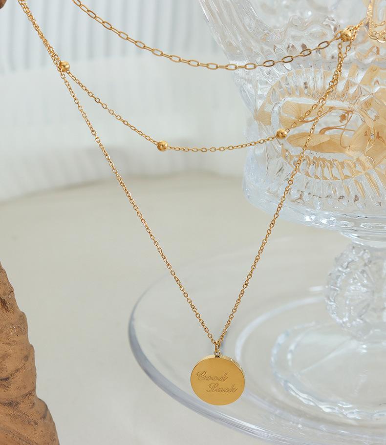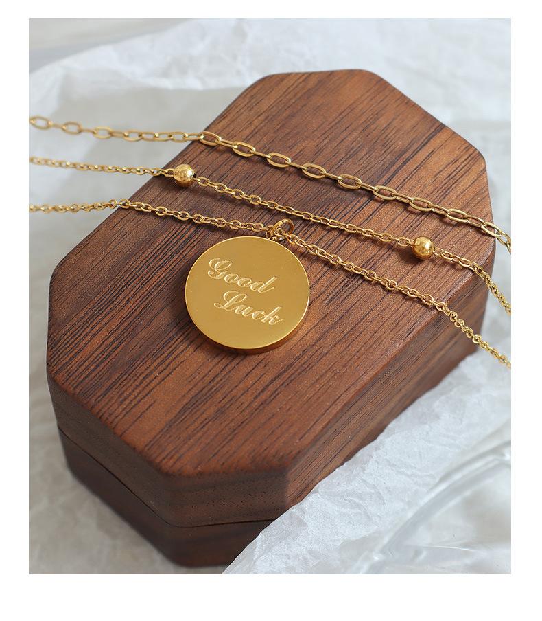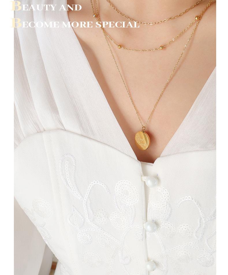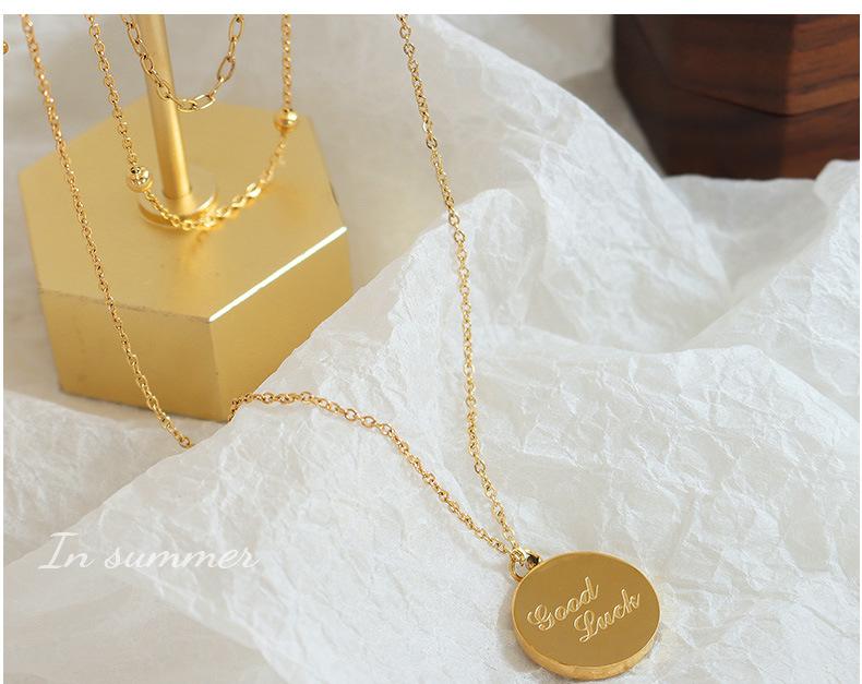 Collar redondo con personalidad de moda de estilo coreano, estilo simple, exquisito collar apilado para mujer, acero de titanio de 18 quilates, oro real P681