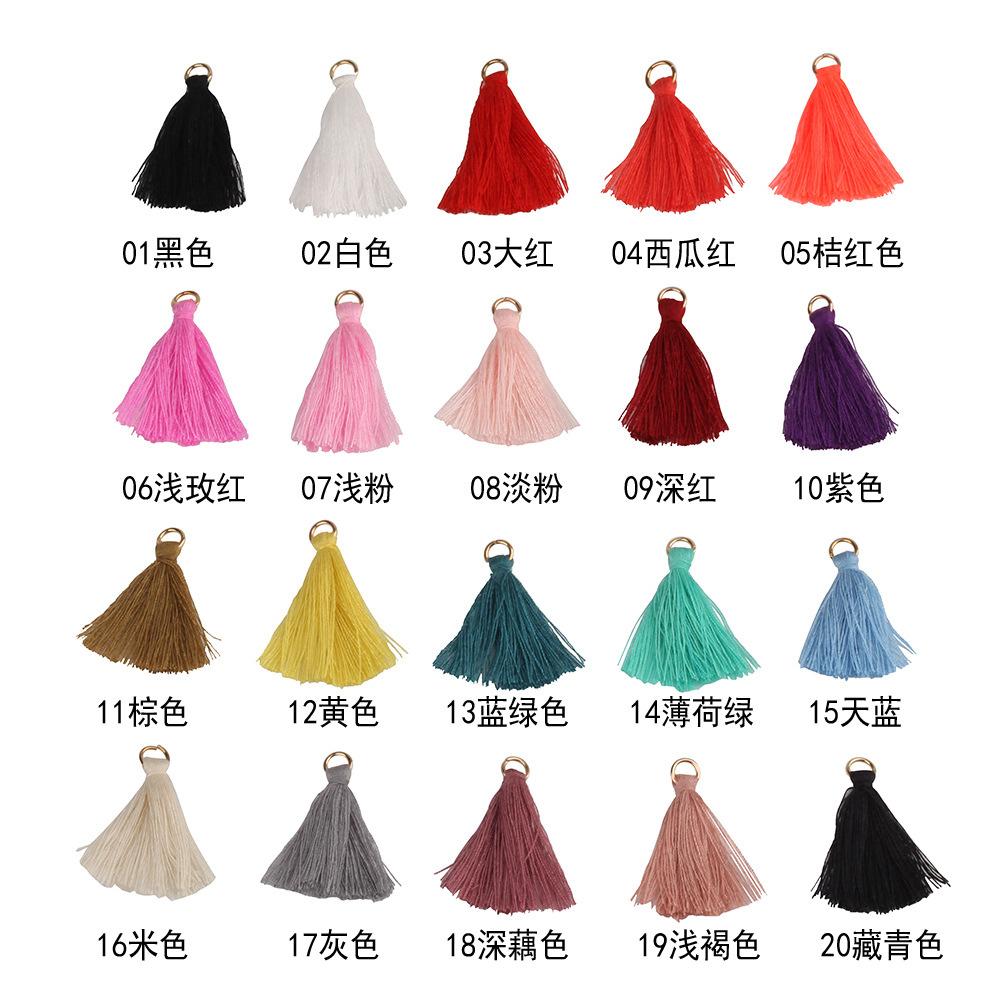 Borla pequeña de poliéster y algodón de 3 cm con anilla colgante, exquisita borla de 3 cm, color negro, venta al por mayor
