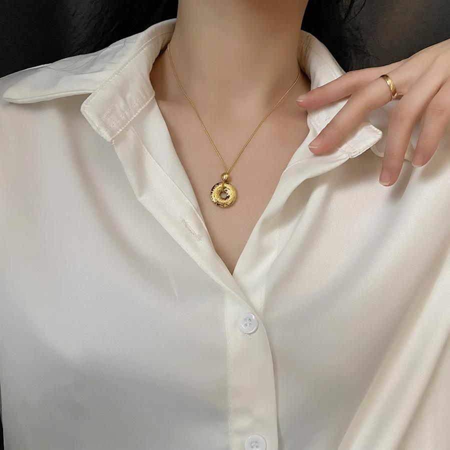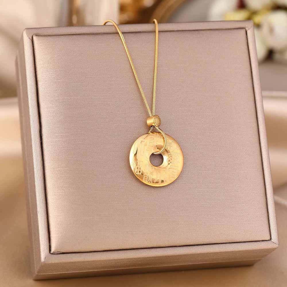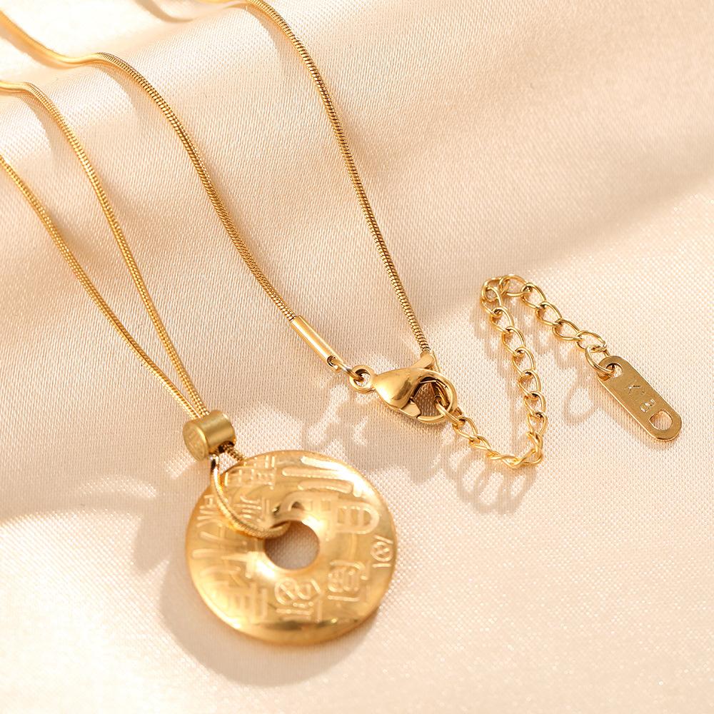 Cadena de clavícula delicada de acero de titanio y oro de 18 quilates con hebilla Ping An de estilo chino, diseño de nicho con transferencia de sentido que no se decolora.