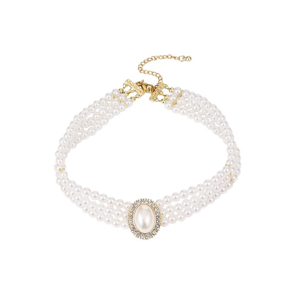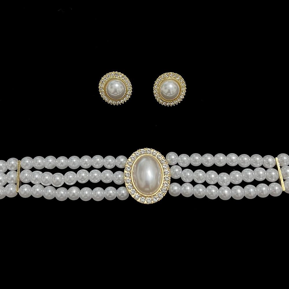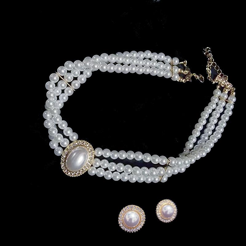 Collar de novia de lujo ligero, sencillo, retro, ovalado, con perlas superdeslumbrantes, estilo francés, para mujer, vestido de novia, cadena de pendientes de alto rendimiento
