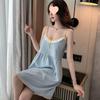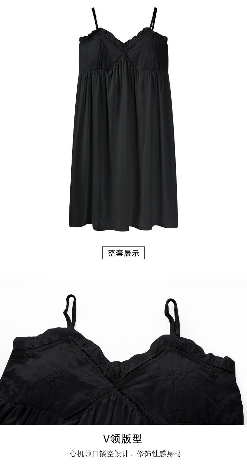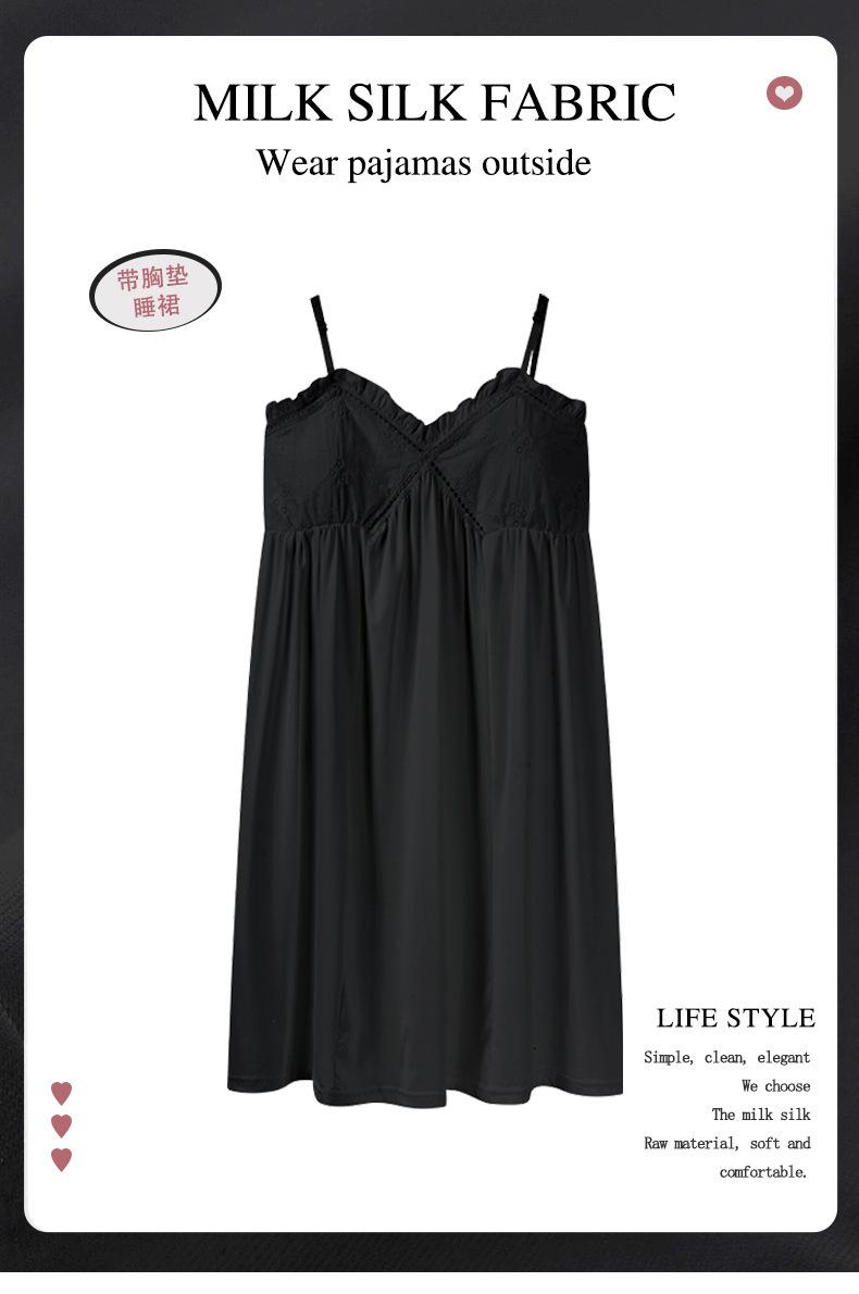 Camisón negro con almohadillas para el pecho para mujer, pijama de verano fino y sexy con escote en V, estilo Pure Desire, falda holgada de talla grande