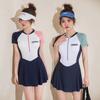Traje de baño de una pieza nuevo europeo y americano 2024 para mujer, vestido de protección solar conservador, traje de baño de aguas termales para vacaciones en la playa.
