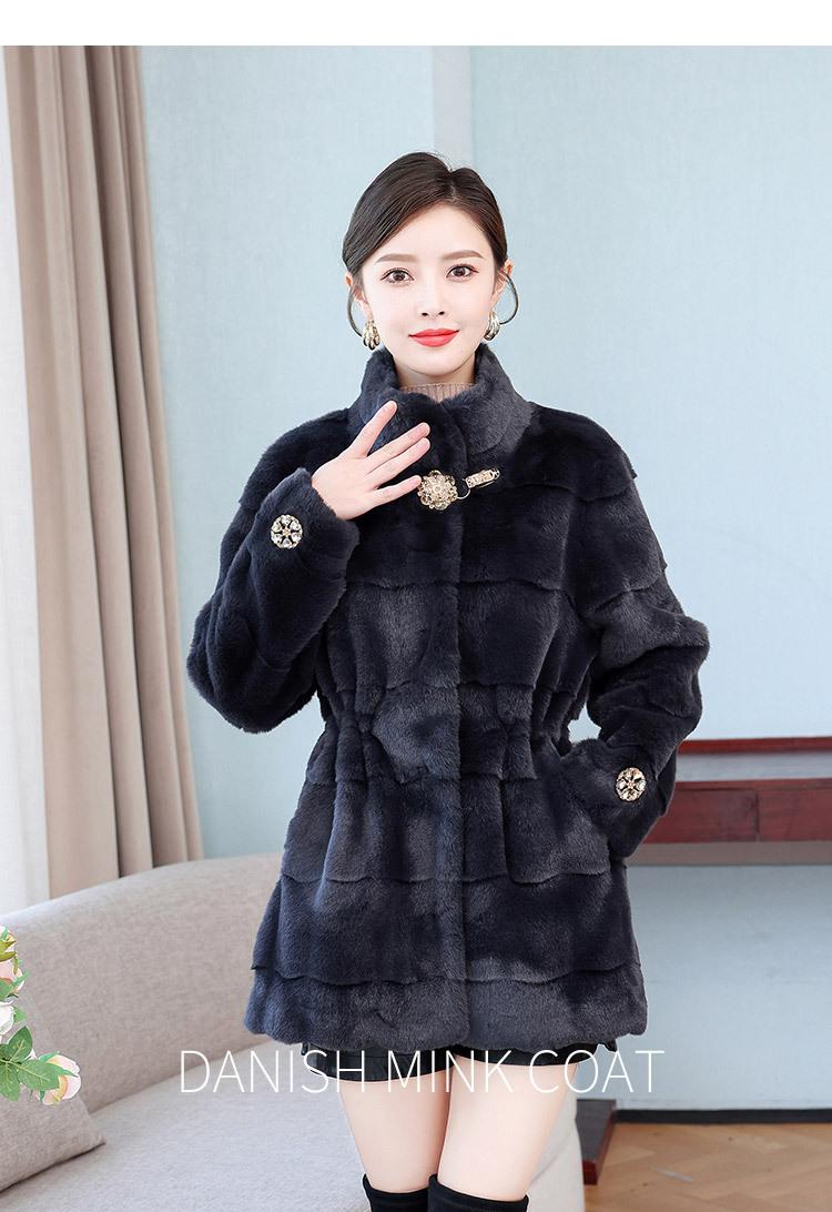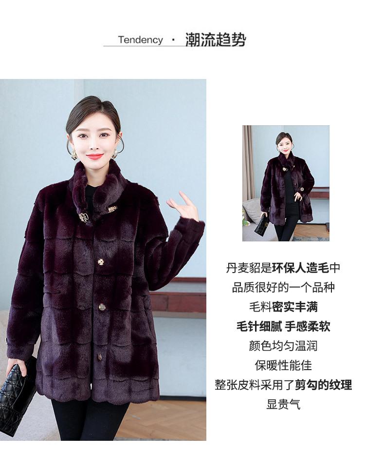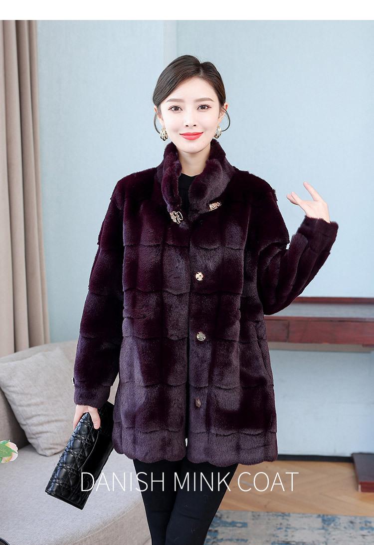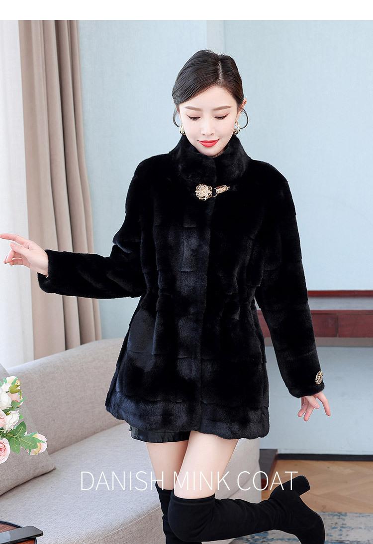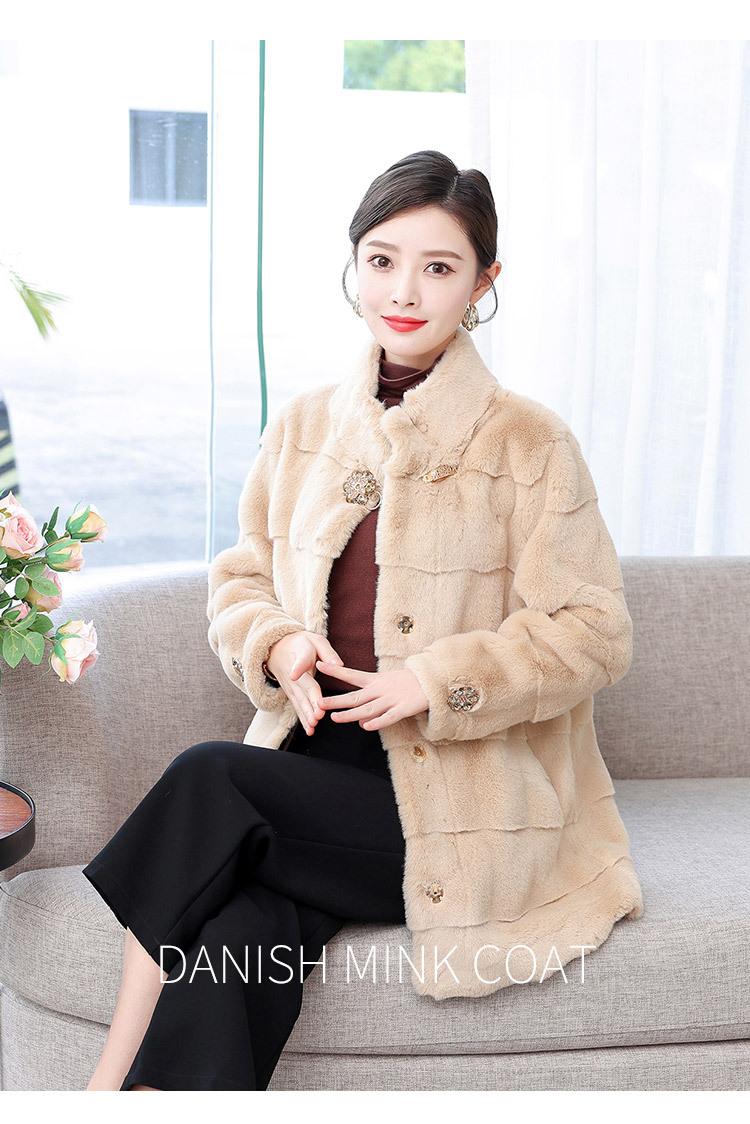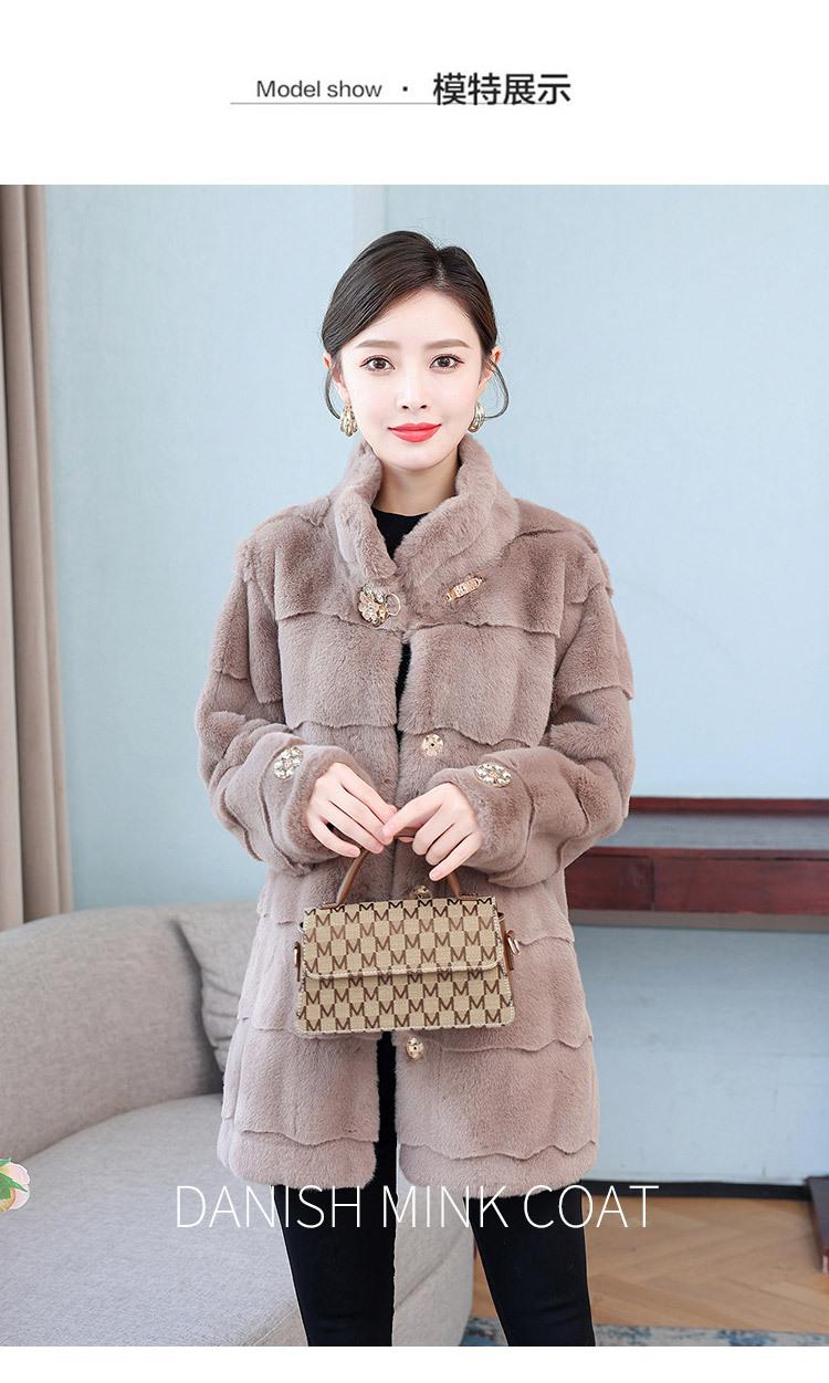 2022 Nuevo Invierno Estilo Coreano Abrigo de Visón Danés de Largo Medio para Mujer con Forro Polar Engrosado de Piel de Una Pieza de Imitación de Visón