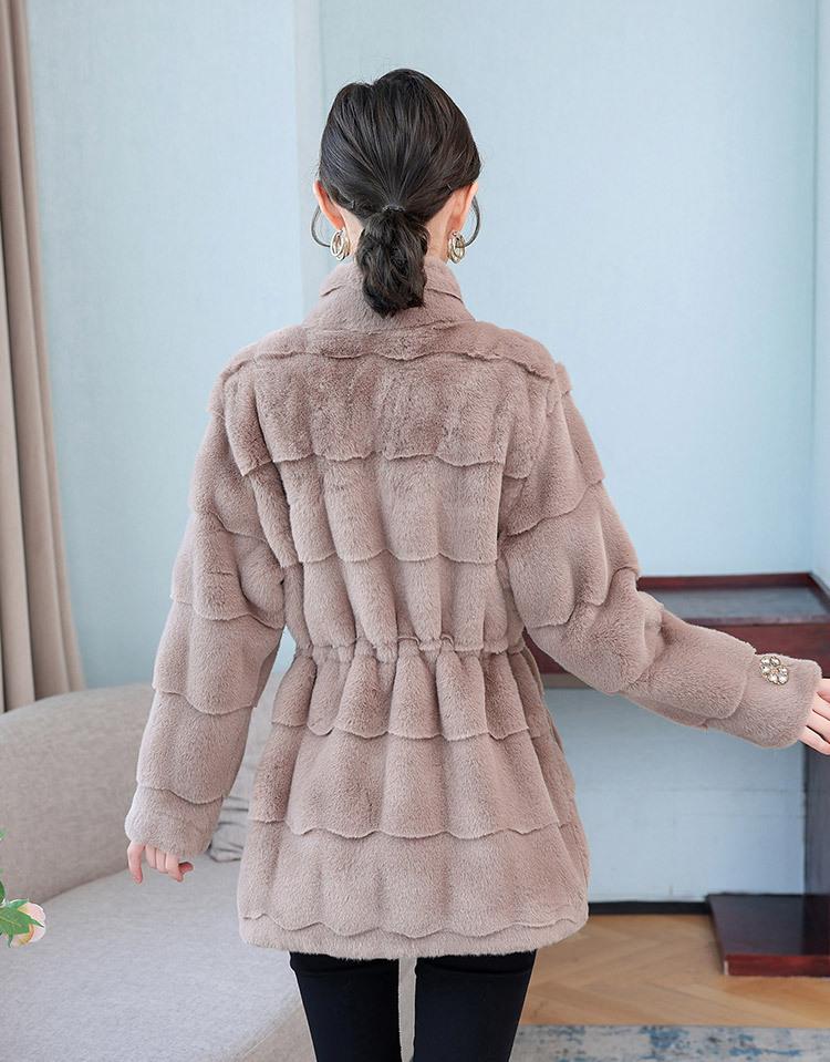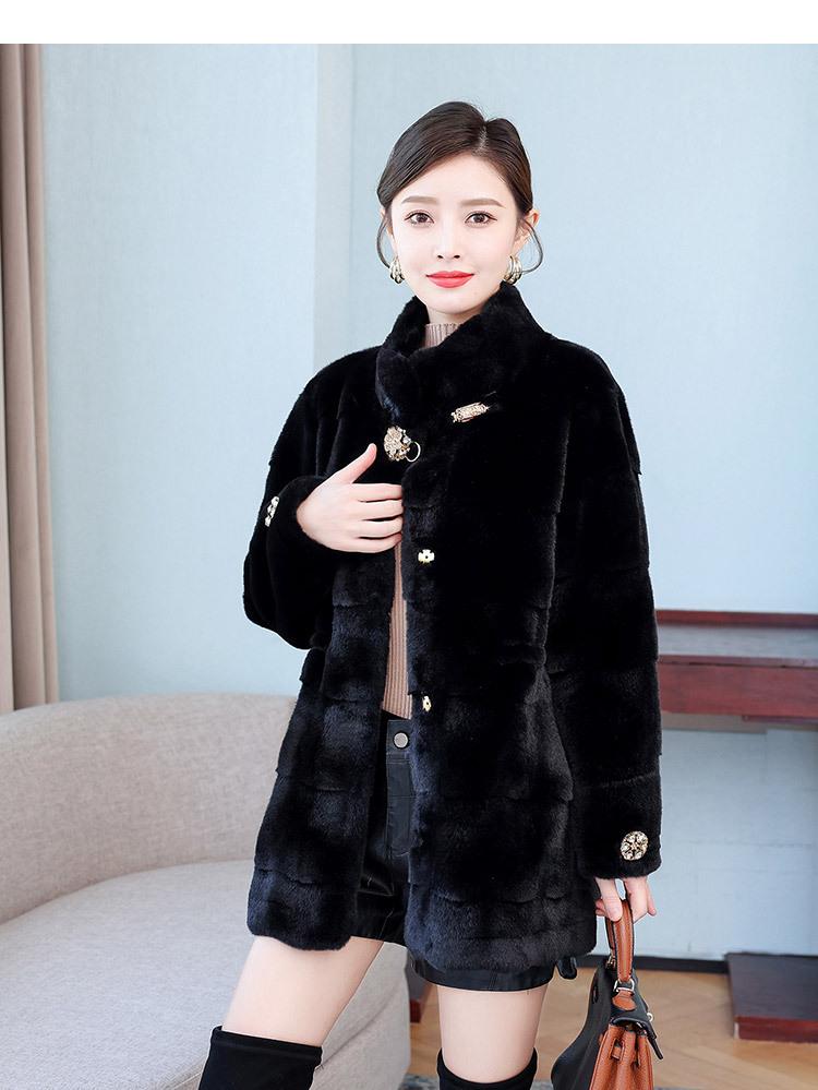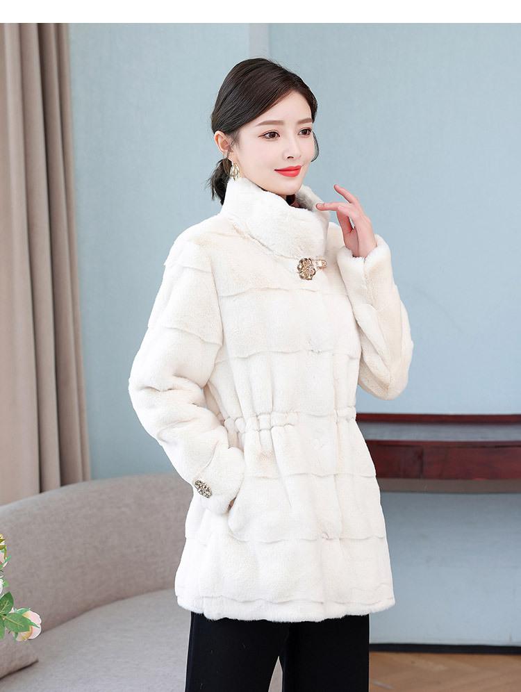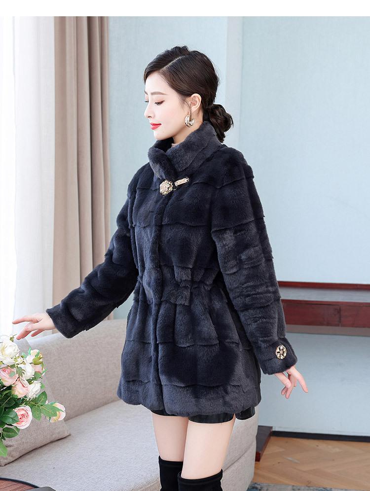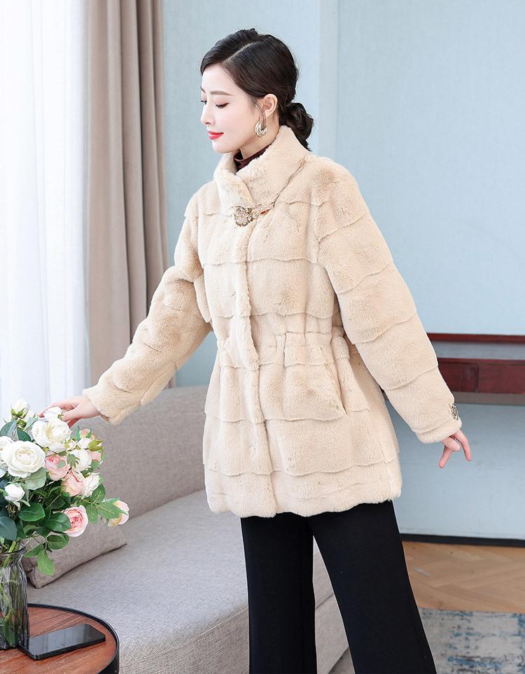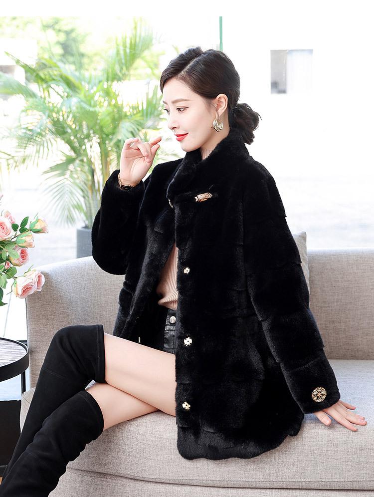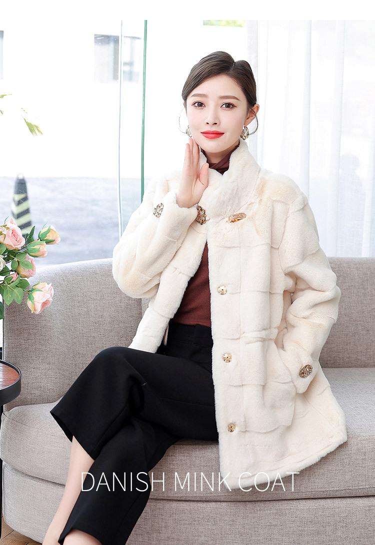 2022 Nuevo Invierno Estilo Coreano Abrigo de Visón Danés de Largo Medio para Mujer con Forro Polar Engrosado de Piel de Una Pieza de Imitación de Visón