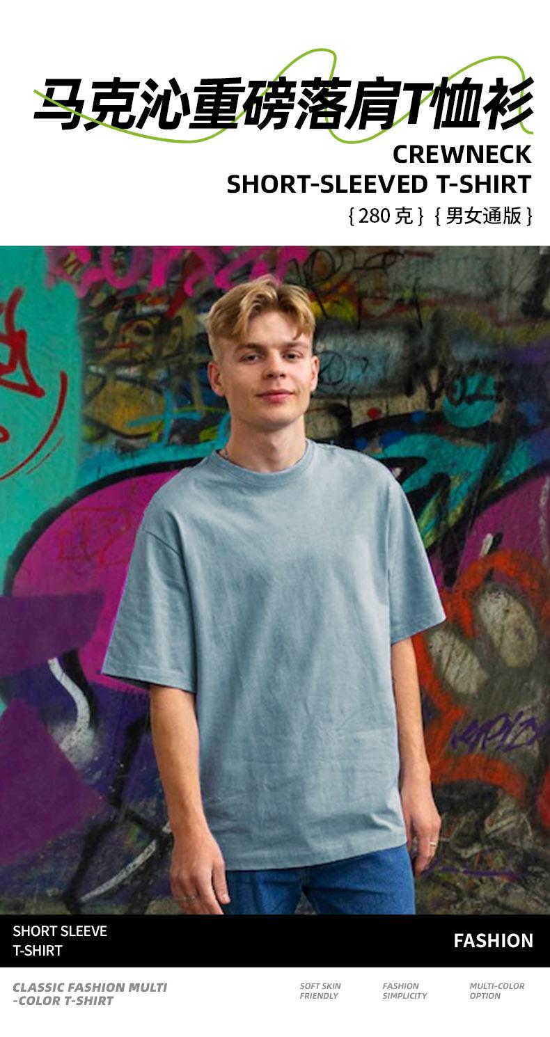 Camiseta de algodón pesado de 280 g, camisa publicitaria personalizada de manga corta con logotipo bordado, ropa de grupo personalizada de Shanghai, monos