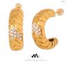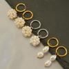 Nuevos pendientes de botón de acero de titanio con diamantes geométricos retro de moda transfronteriza chapados en oro de 18 quilates, pendientes de perlas que no se decoloran y combinan con todo para mujer