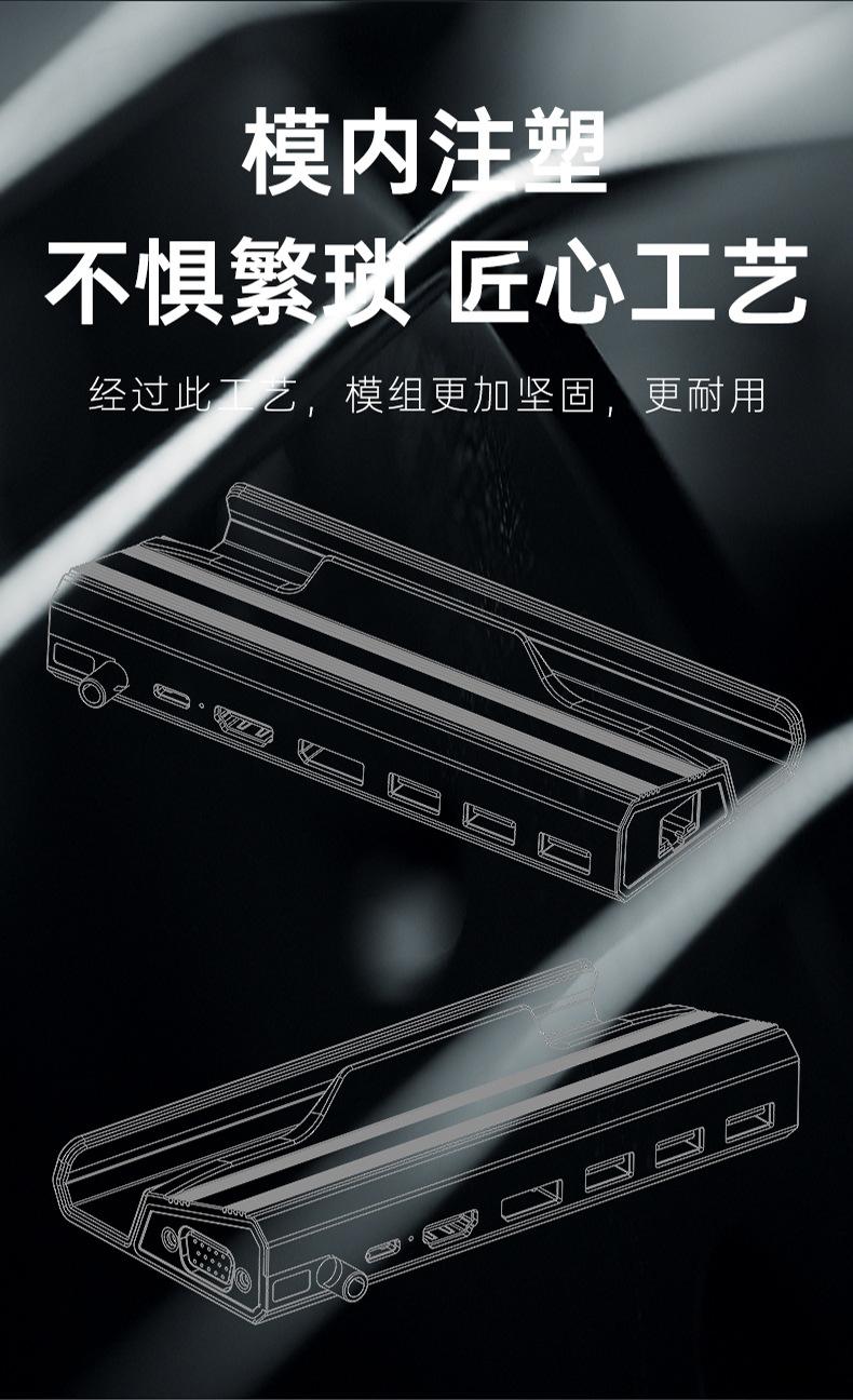 Nombre del producto:Tipo C/M a PD+USB3.0*3+USB2.0*3+RJ45+HDMI2.0+DP1.2+VGA+Ventiladores dobles(11combinar1)