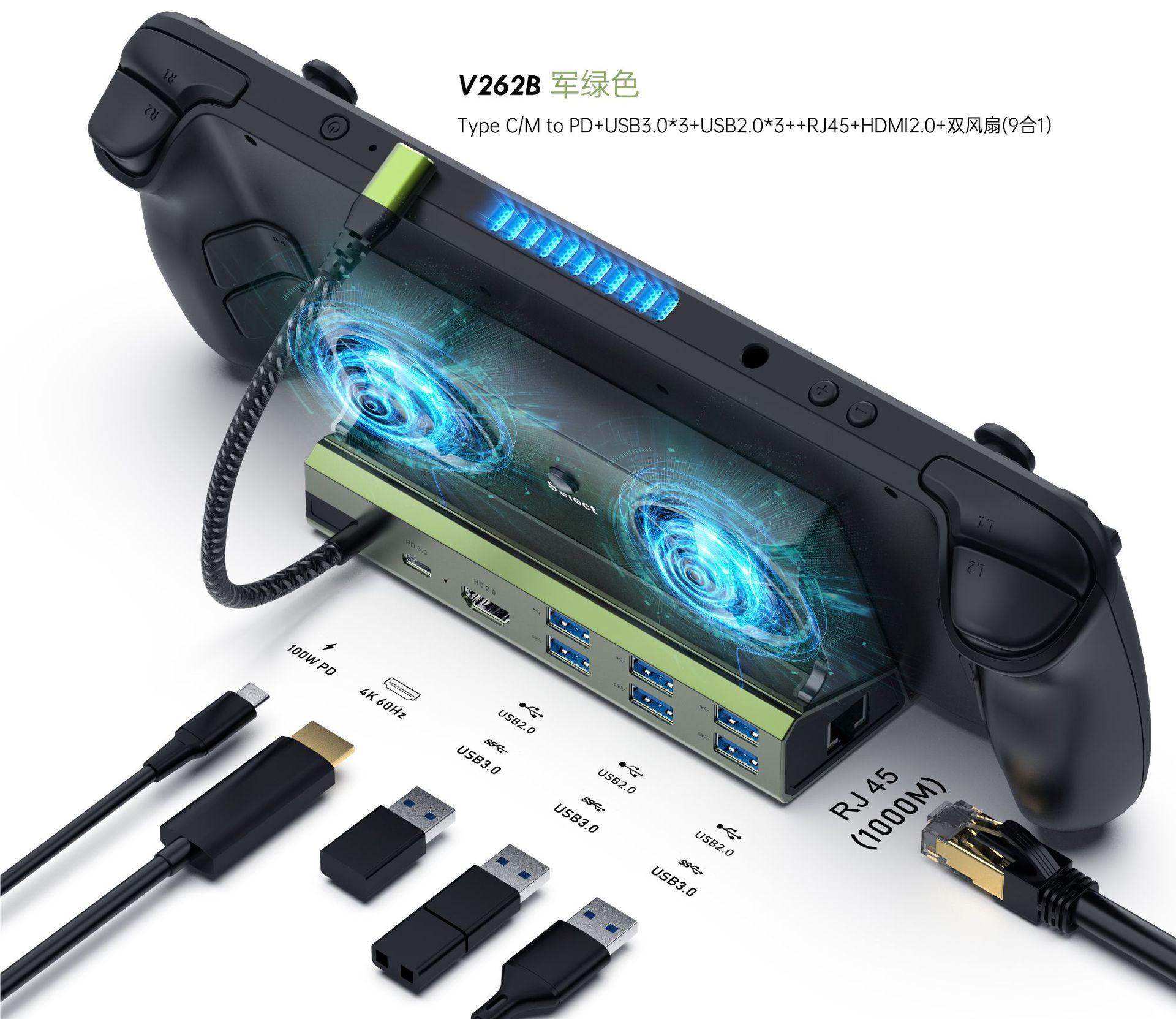 Características del producto:Este producto es una estación de acoplamiento multifuncional portátil adecuada para su uso con tipo C.interfazvaporConsola portátil, etc. Múltiples modos de expansión de video, diseño de ventilador doble,Resuelve los problemas de calentamiento del dispositivo original y de interfaces USB nulas o escasas, y admite fuente de alimentación ascendente PD3.0.