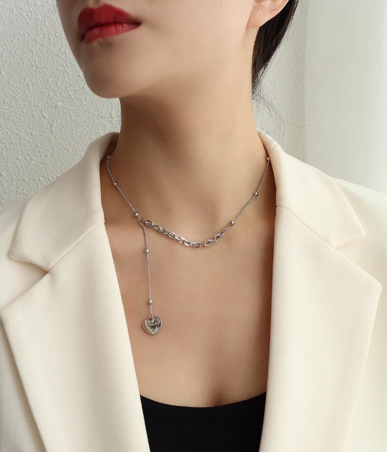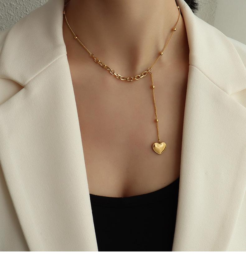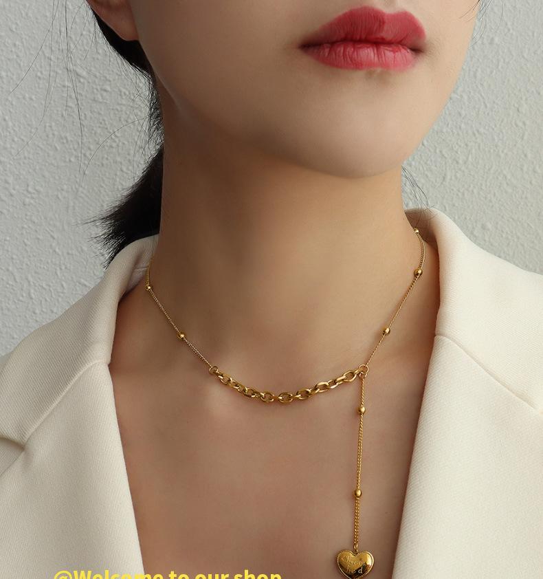 Marca marca acero titanio oro 18k engaste alto collar borla bola de acero amor corazón inglés cadena clavícula femenina P1029