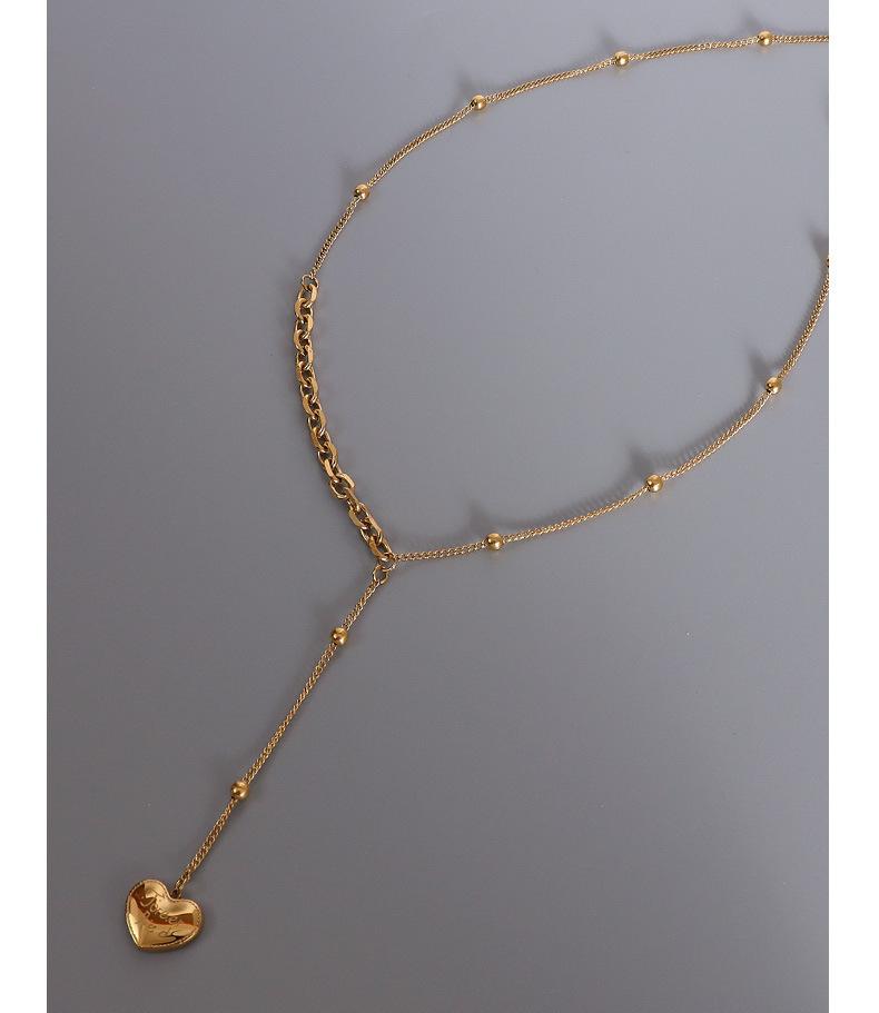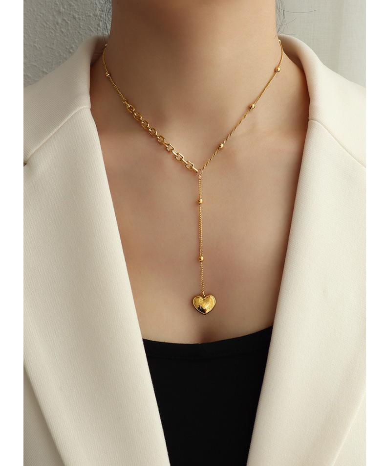 P1029-heart tassel stitching necklace gold 38 5cm, P1029-peach heart tassel stitching necklace steel color 38 5cm