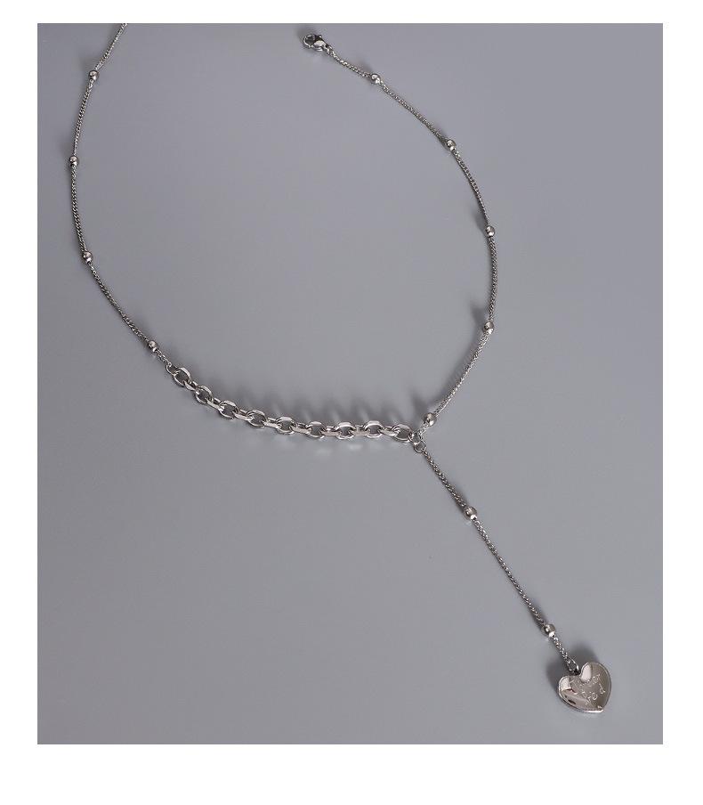 P1029-peach heart tassel stitching necklace steel color 38 5cm
