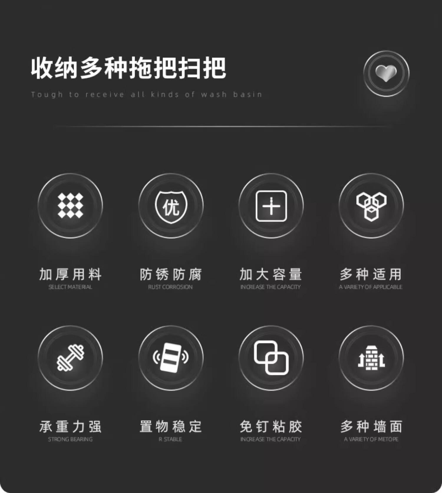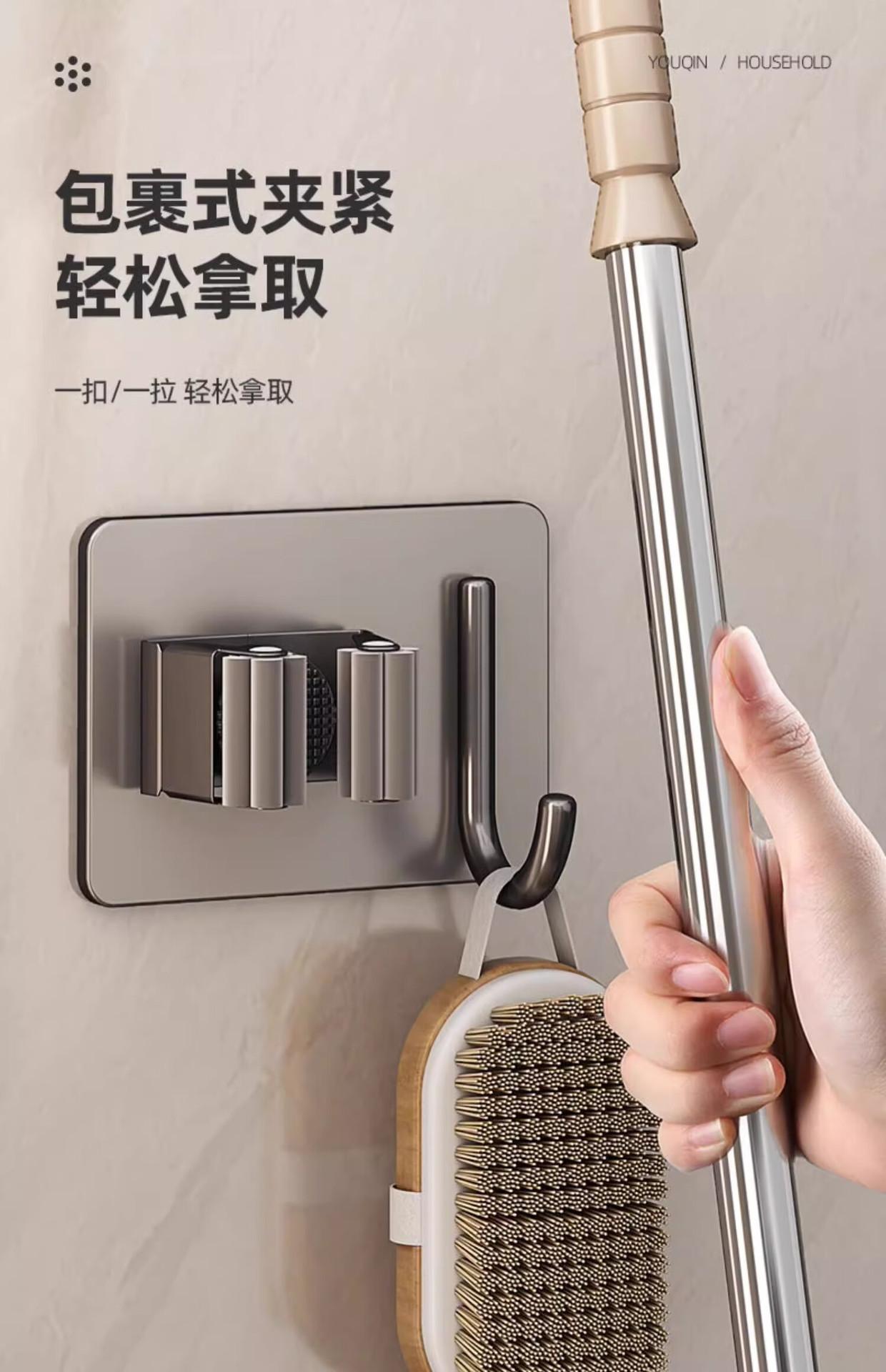 Gancho para trapeador, artefacto de almacenamiento para inodoro sin perforaciones, gancho adhesivo, estante para escobas, clip para trapeador para colgar en la pared con adhesivo fuerte