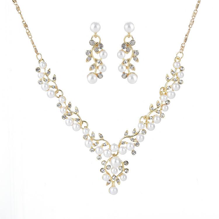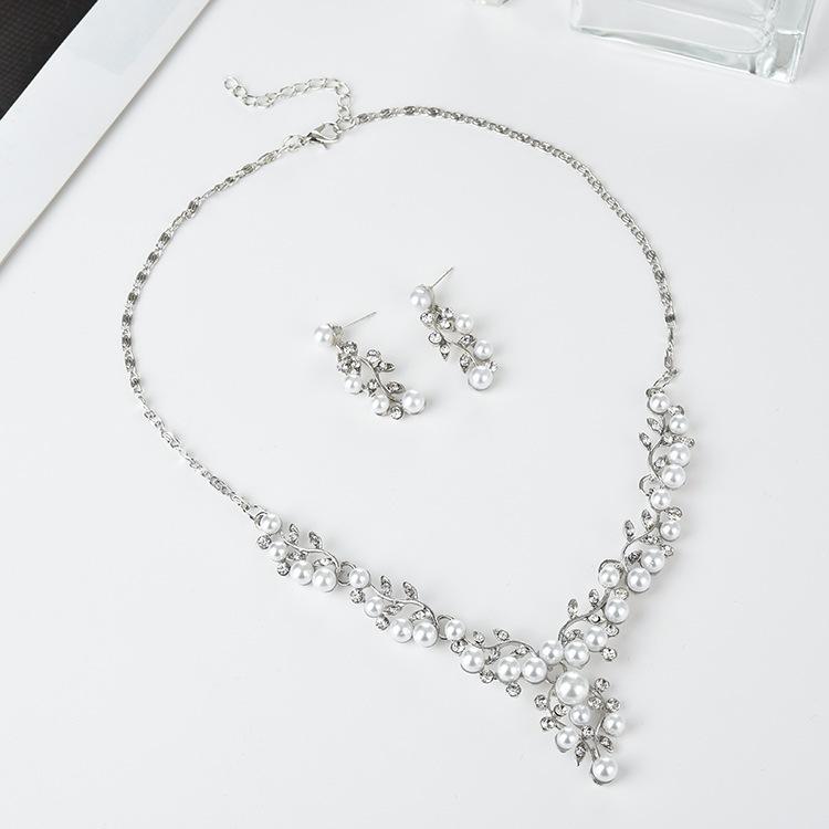 Conjunto de dos piezas de collar y pendientes para novia, con diamantes de imitación, estilo coreano, sencillo y combinable, para vestido de novia, N5106