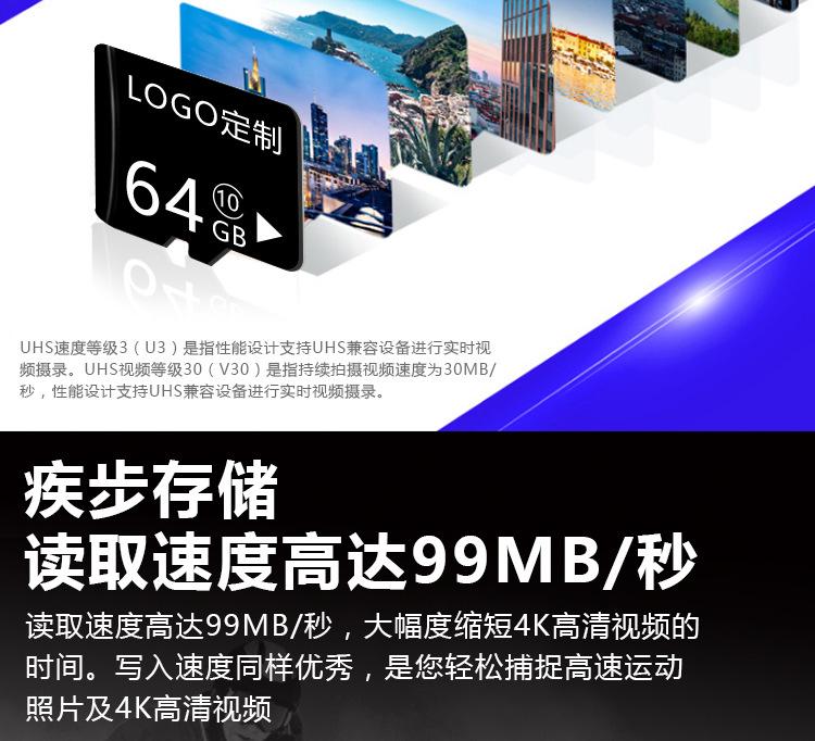 Tarjeta de memoria de alta velocidad de 32 GB, tarjeta TF de 64 GB, tarjeta de memoria de 128 GB, grabadora de conducción para monitoreo de teléfonos móviles, venta al por mayor directa de fábrica