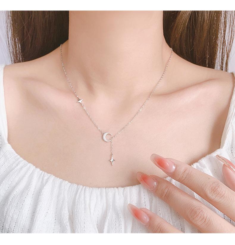 | Collar con colgante de planeta y universo en plata esterlina S925, diseño de nicho, cadena de clavícula simple y versátil, joyería con colgante de planeta y luna. |