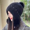 Gorro de lana cálido con forro polar para mujer, de invierno, coreano, combinable con todo, para otoño e invierno, para montar a caballo, con protección auditiva y resistente al frío.
