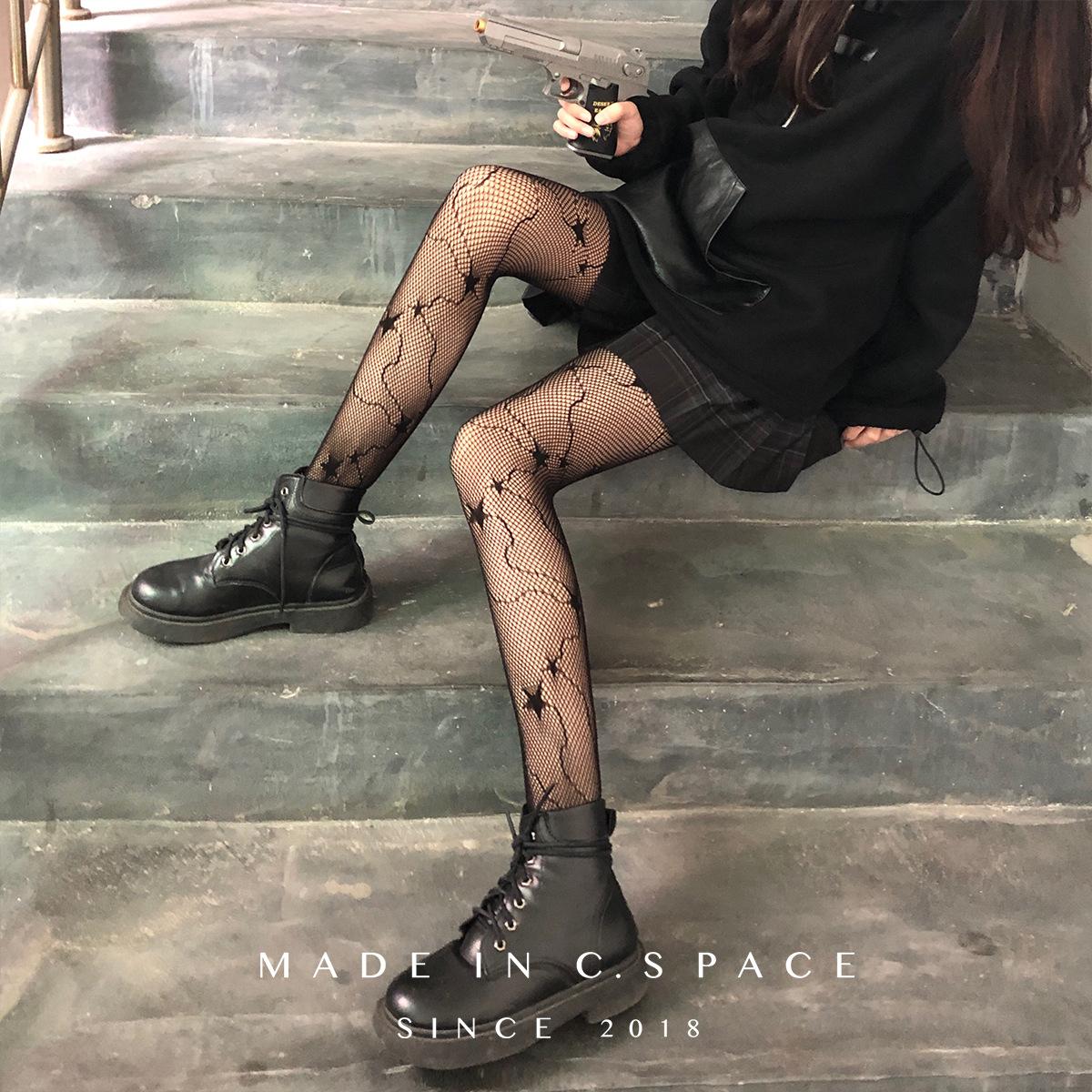 Medias de red huecas calientes de diamantes j sexy medias negras letras europeo y americano talla grande tentación ins lazo pesca