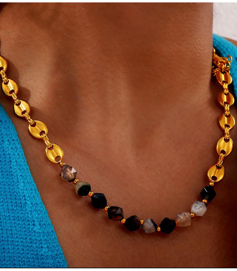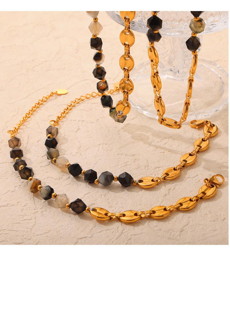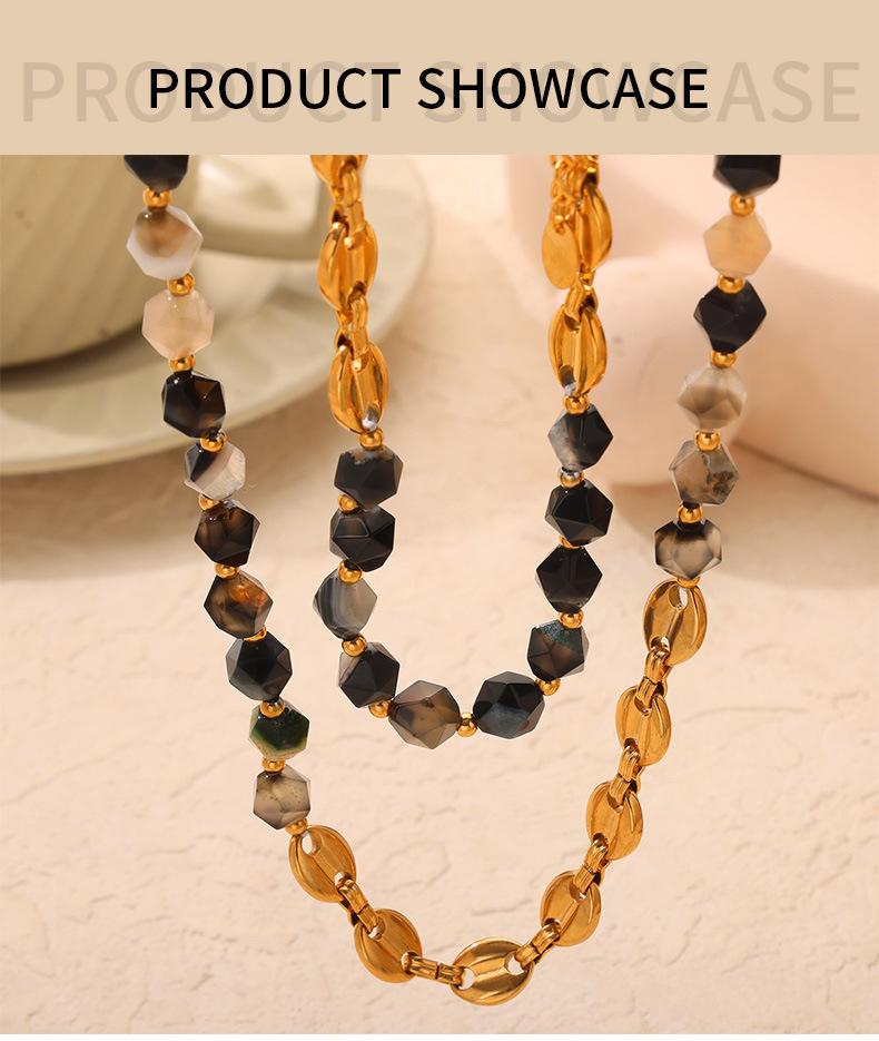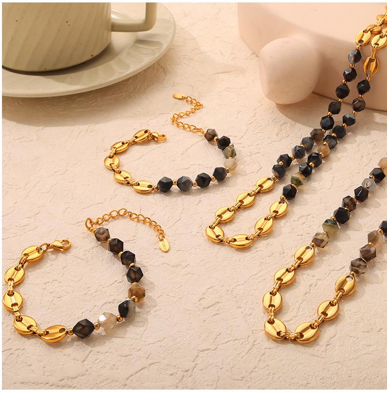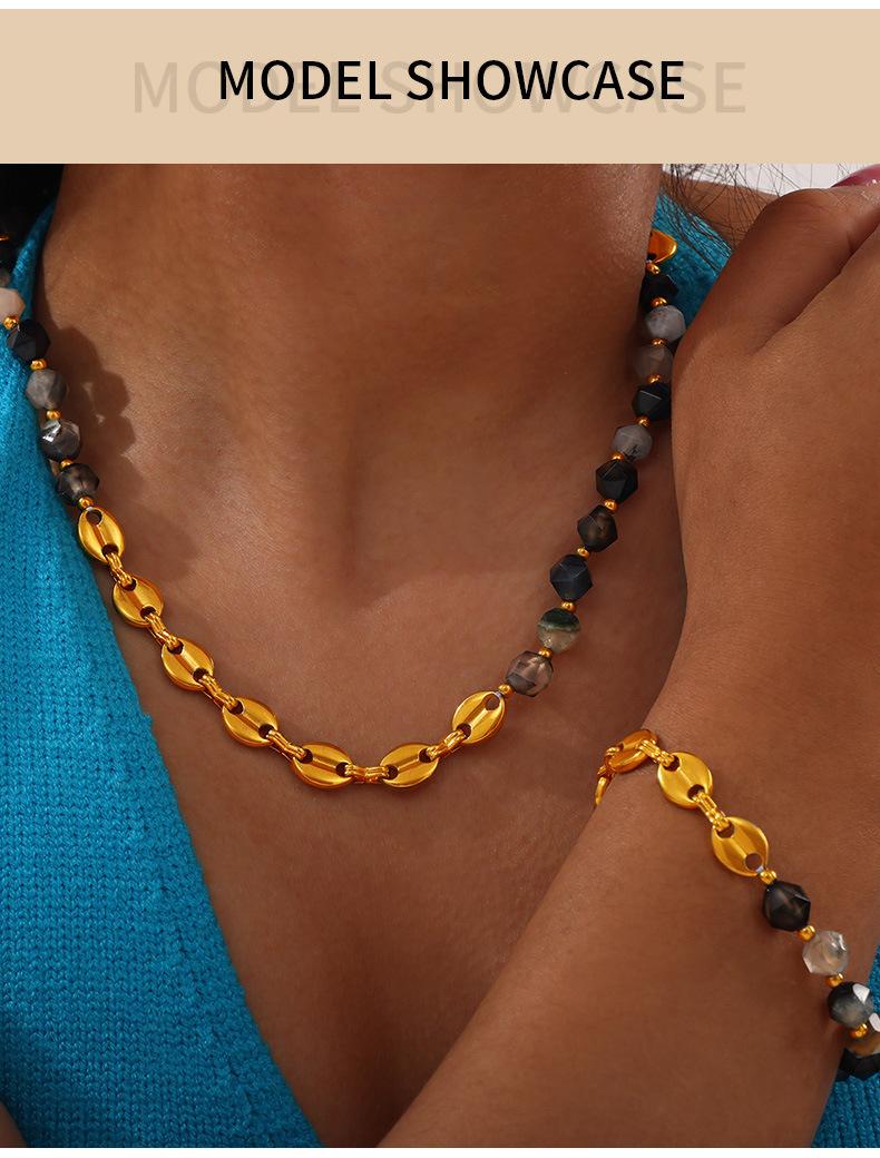 Nuevo collar y pulsera de cuentas de estilo francés retro estilo corte ligero de lujo de acero de titanio chapado en oro de 18 quilates con piedra natural, hecho a mano