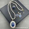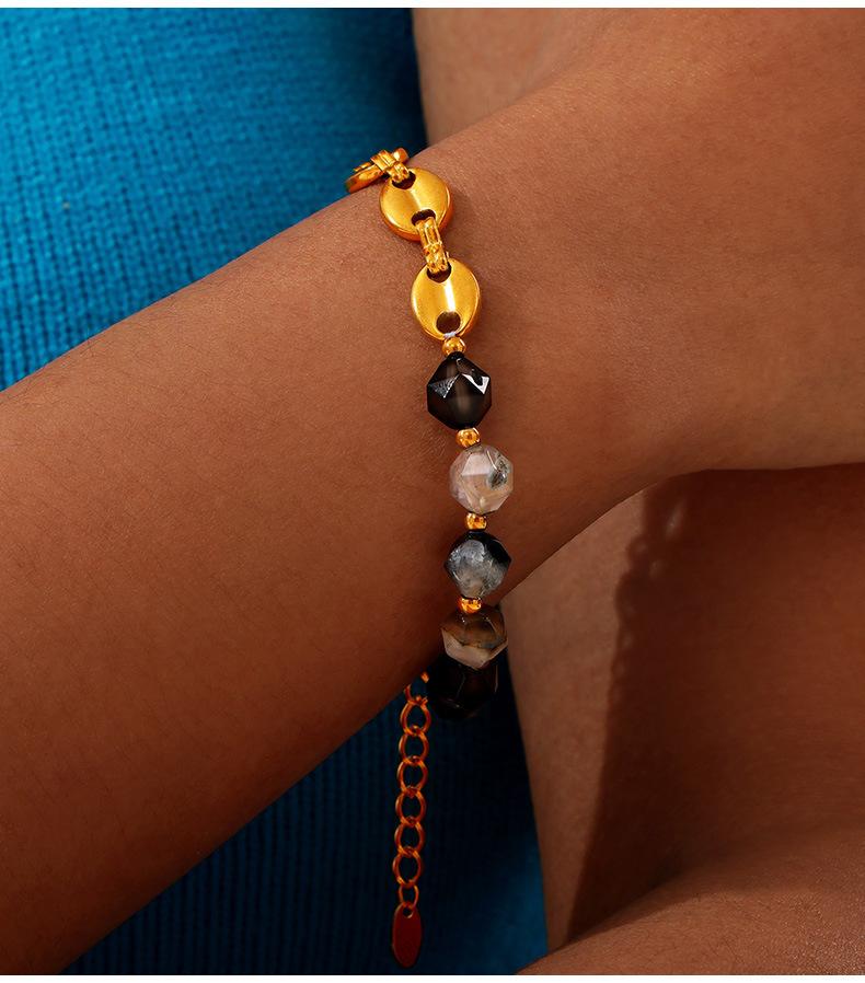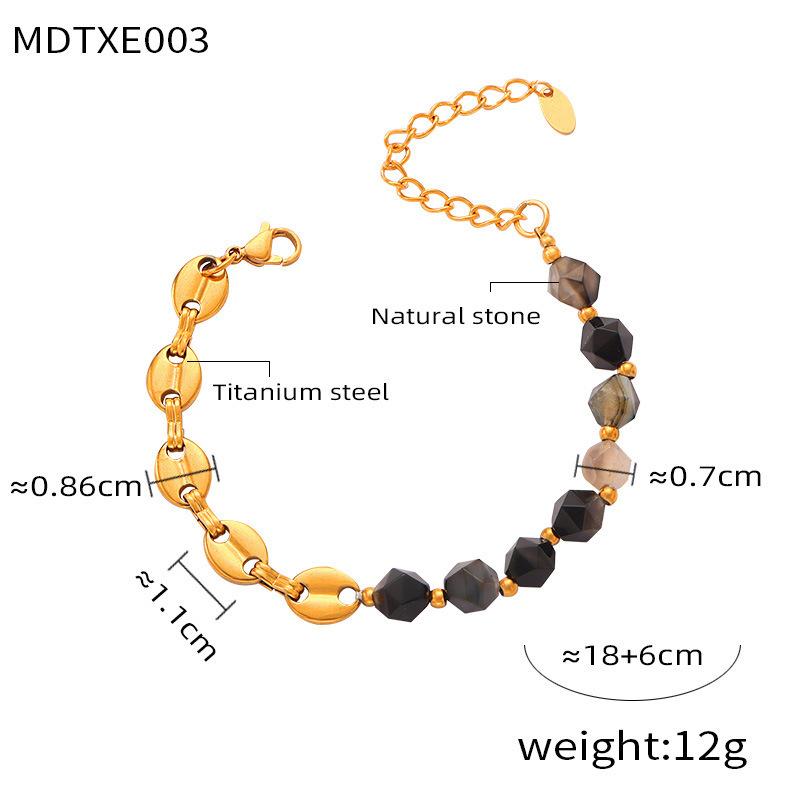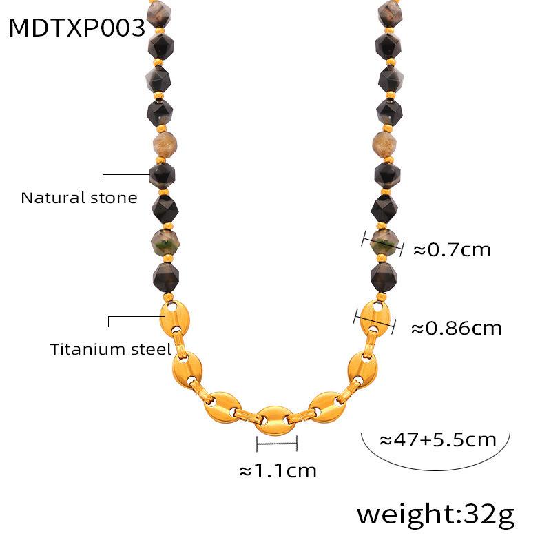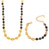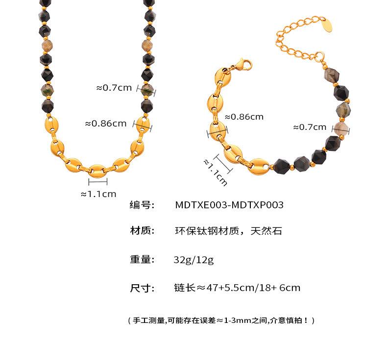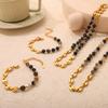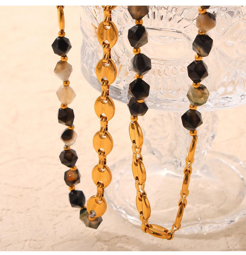 Nuevo collar y pulsera de cuentas de estilo francés retro estilo corte ligero de lujo de acero de titanio chapado en oro de 18 quilates con piedra natural, hecho a mano