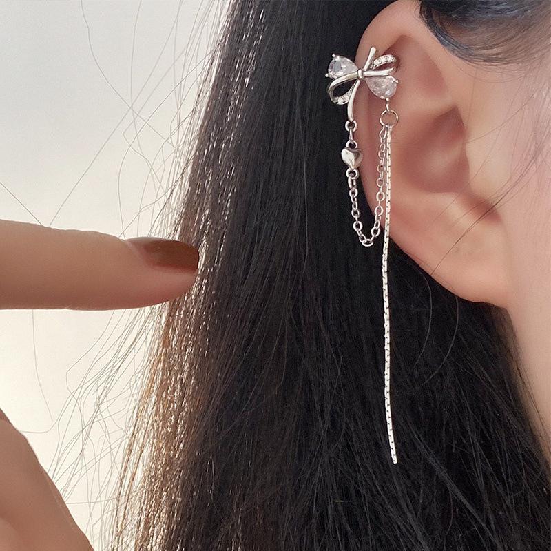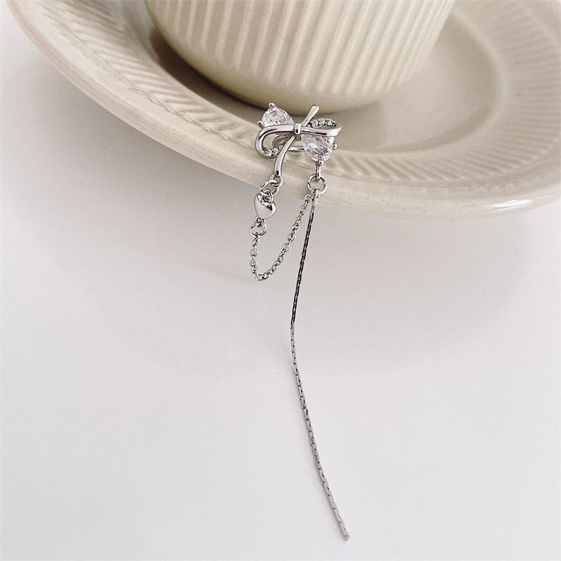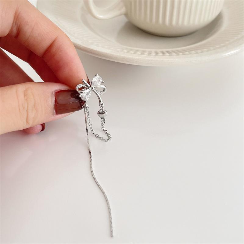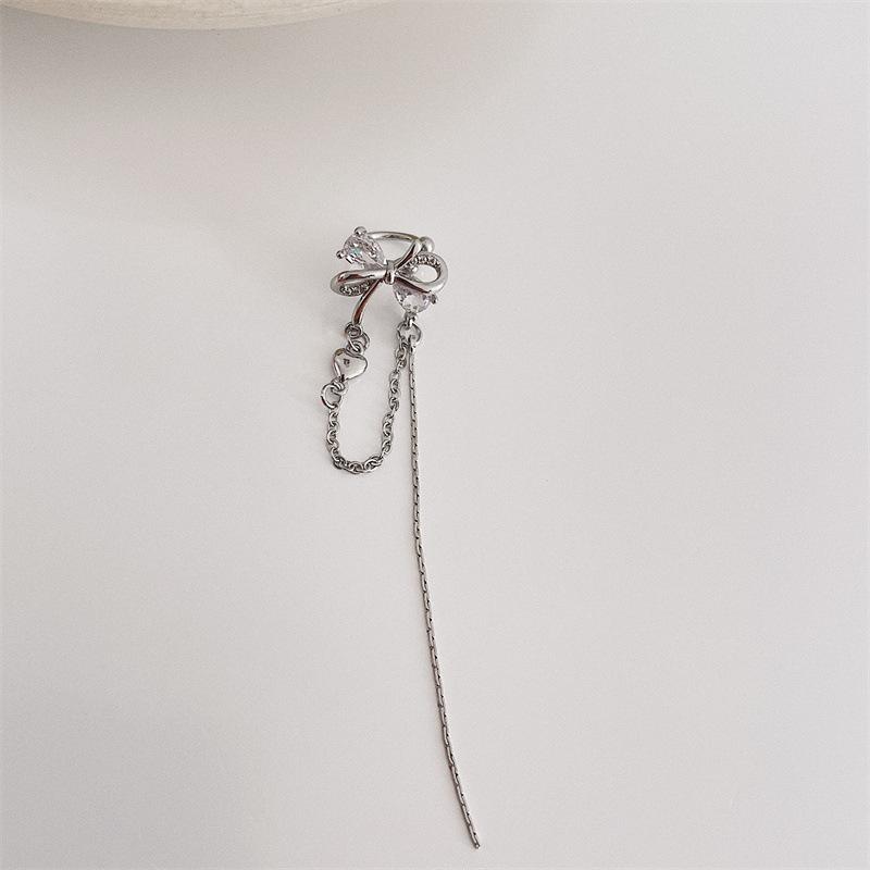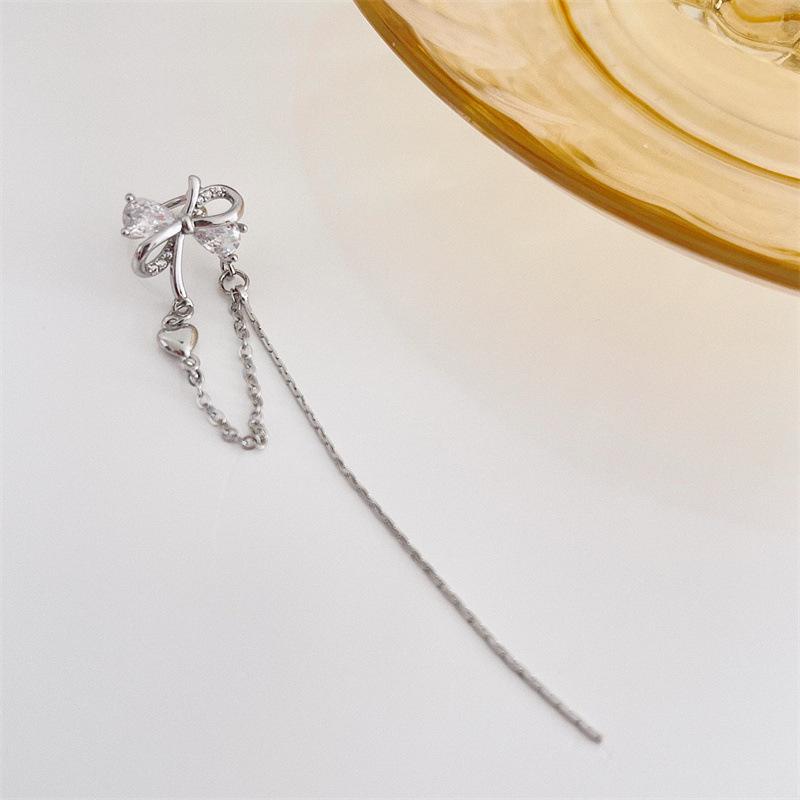 Bow chain tassel ear clip left ear, Bow chain tassel ear clip right ear