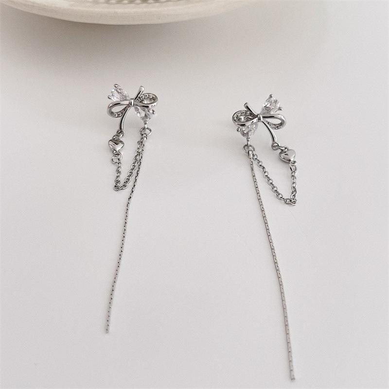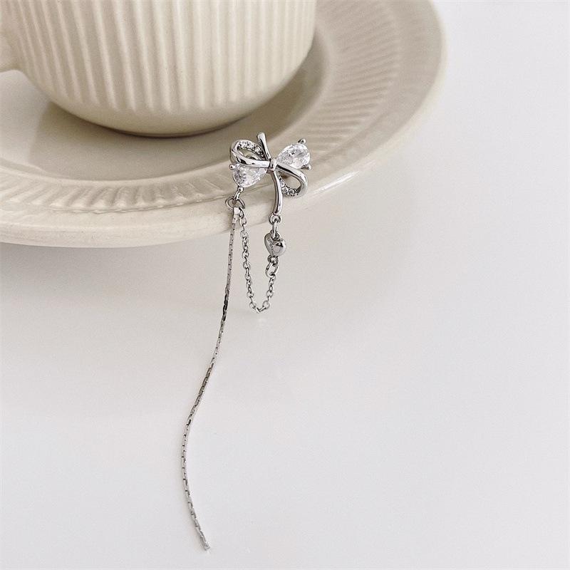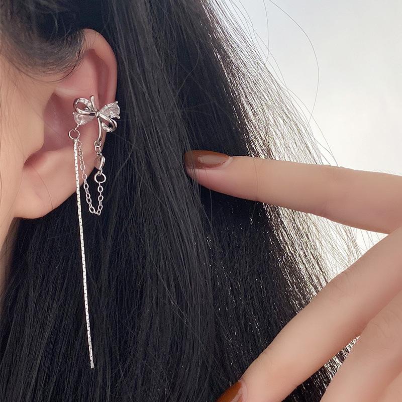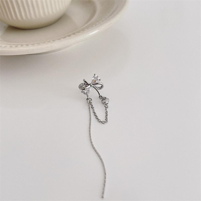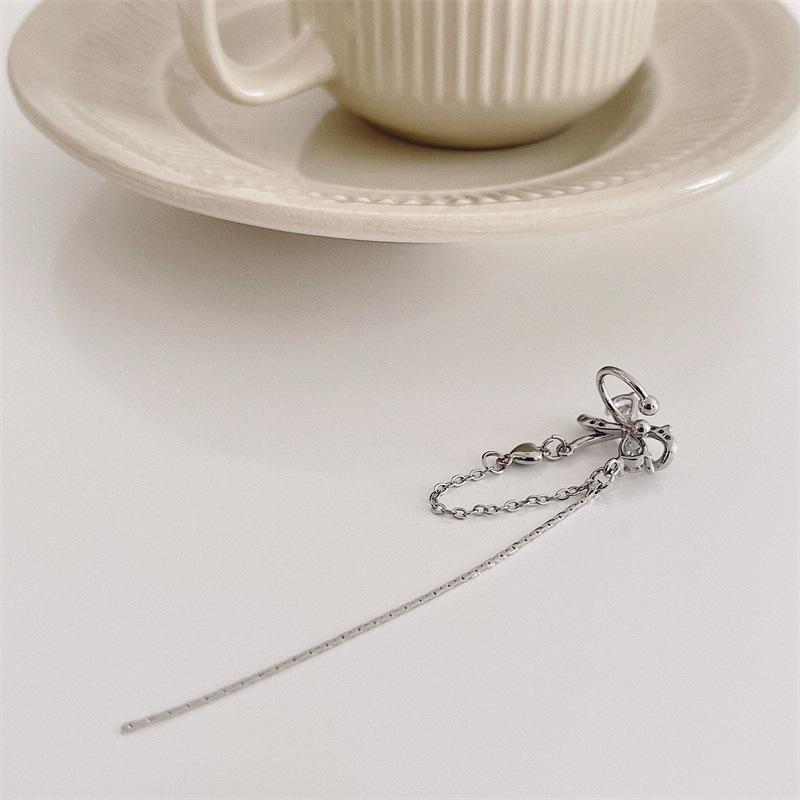 Bow chain tassel ear clip left ear, Bow chain tassel ear clip right ear